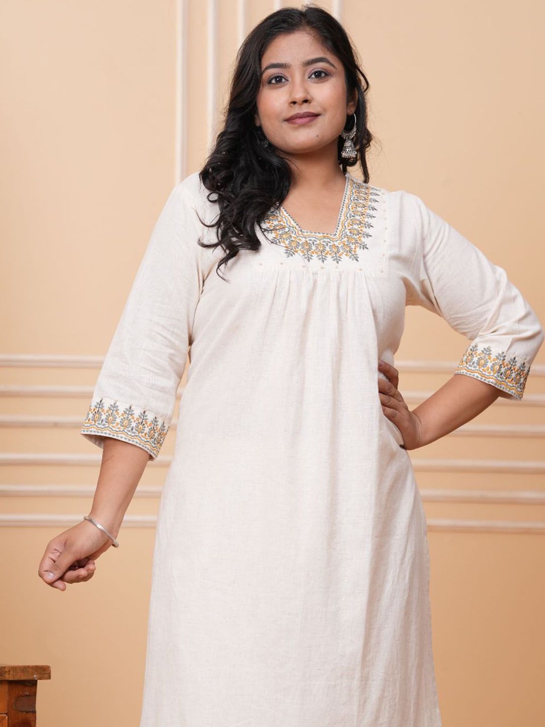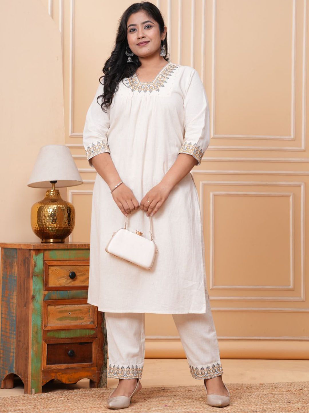 Buy this stylish CRENOL THREADS Women Plus Size Floral Embroidered Regular Thread Work Kurta with Trousers at Marincart Nepal. This product offers great quality and value. Perfect for those looking for the latest trends in fashion. Get yours now at unbeatable prices.