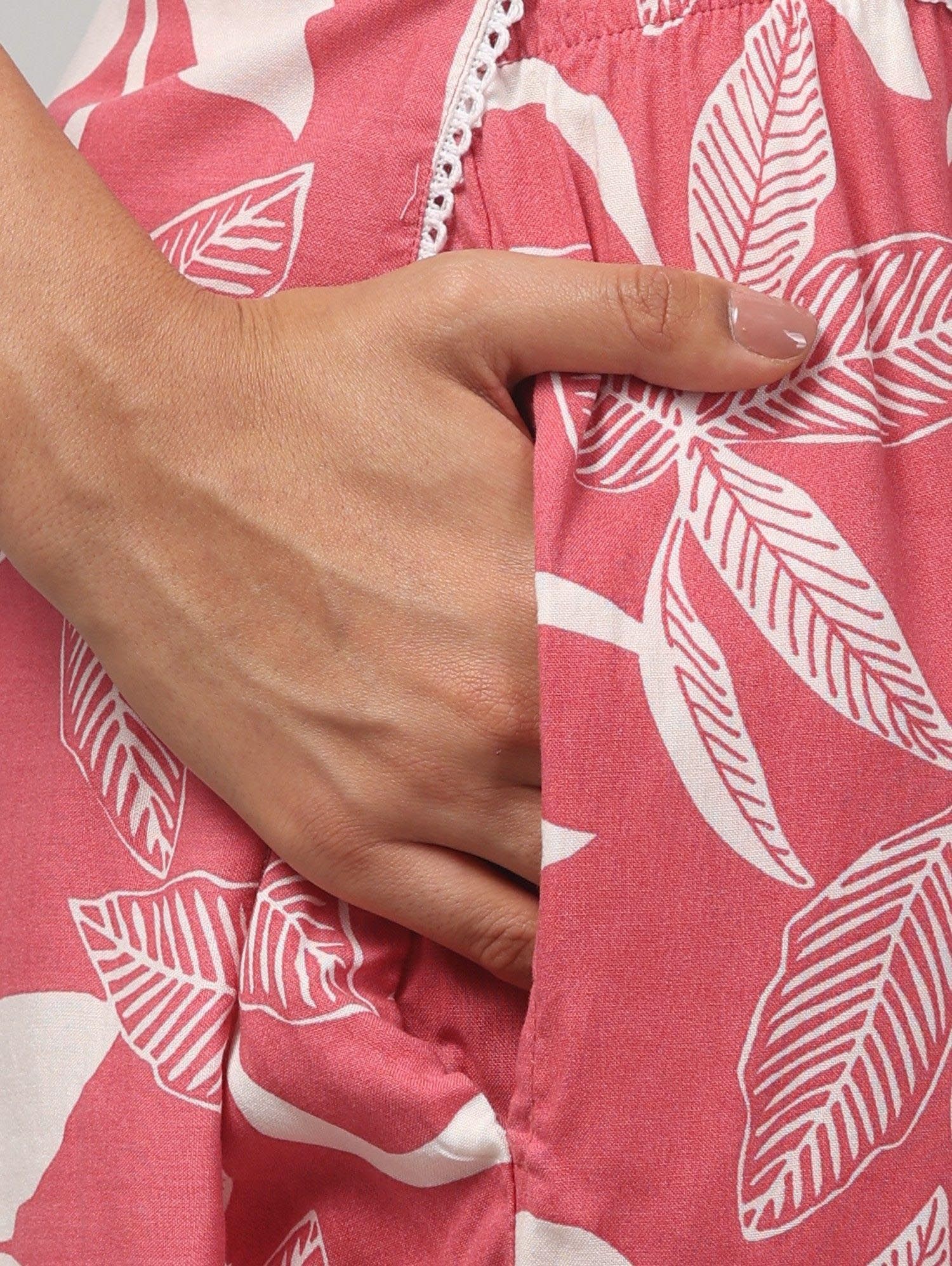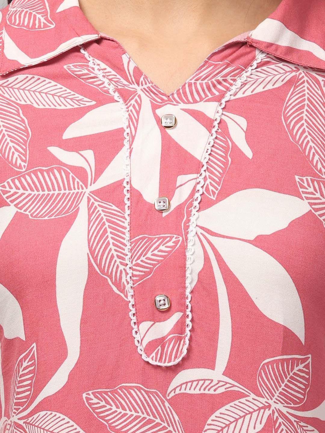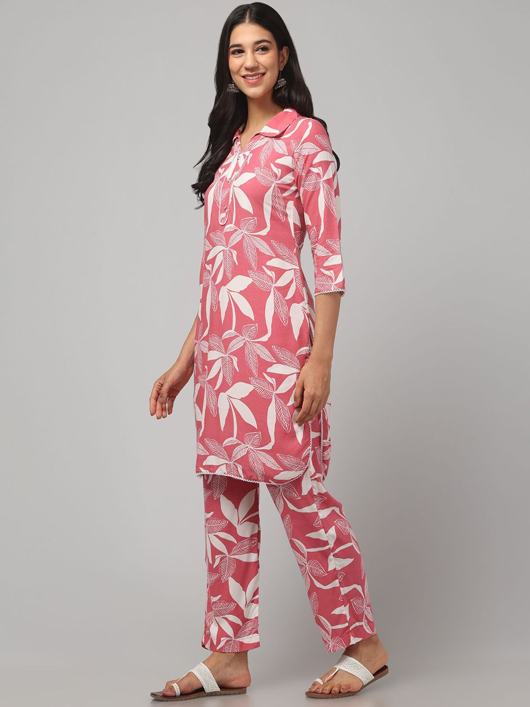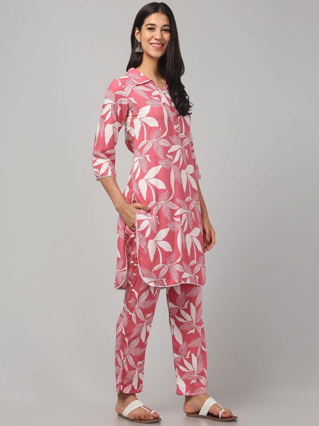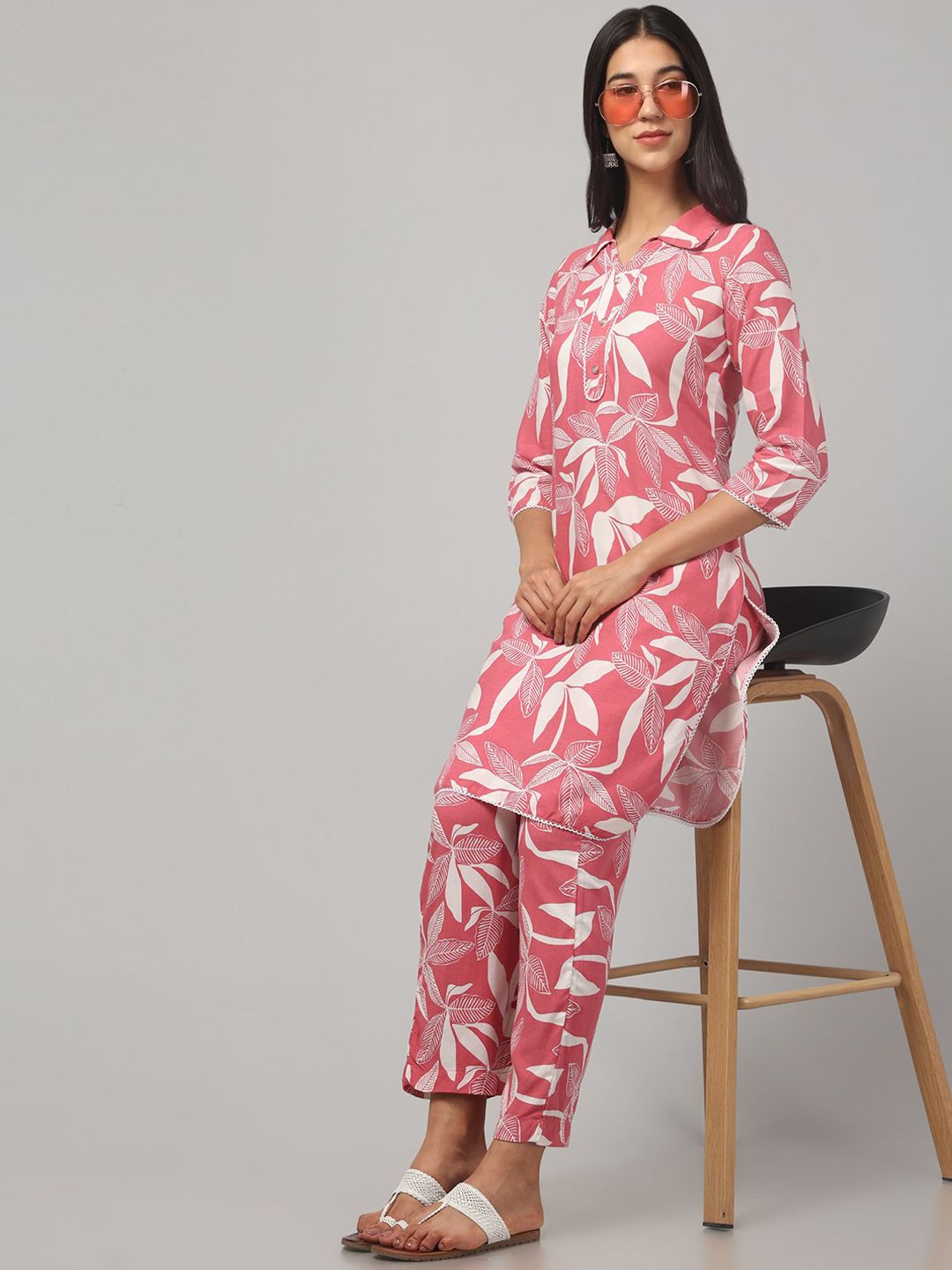 CROWN KING Floral Printed Shirt Collar Pure Cotton Kurta With Trousers