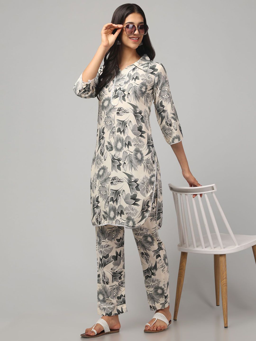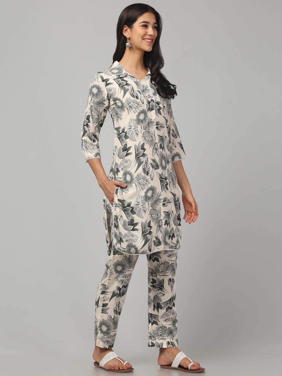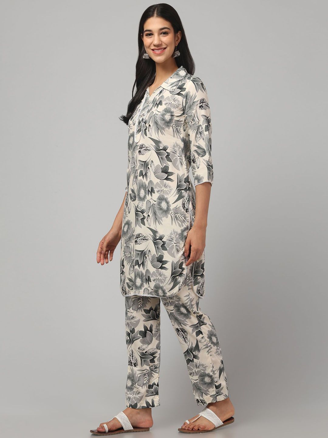 CROWN KING Women Floral Printed Regular Kurti with Trousers