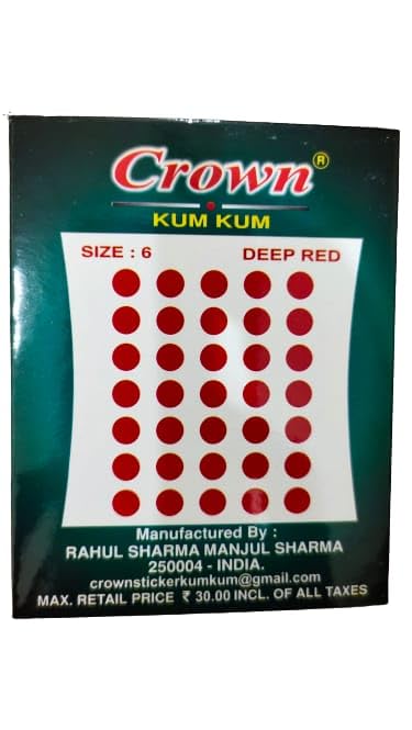 CROWN KUM KUM Round Deep Red sticker Bindiya Bindis Spiral bindi booklet for women Pack of 12 Pieces (6 No.)