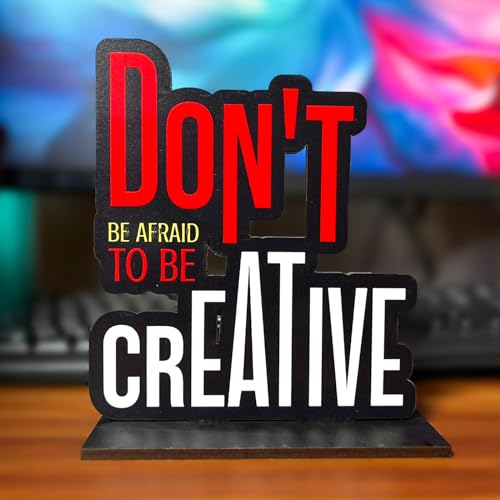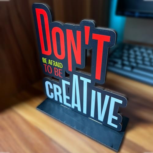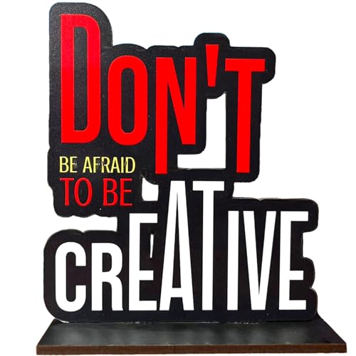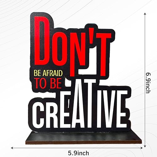 CVANU Wooden Positive Quote Don't Be Afraid to be Creative Idols & Figurine Table Decor Item| Modern Art Showpiece for Office Desk| Study| Book Shelf| Home Decoration and Gift (6.9inchX5.9inch)_S93