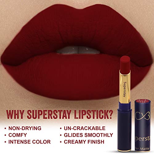 CVB LM-206 SuperStay No Transfer Matte Lipstick, Waterproof and Full-Pigmented, Transfer-Proof Smudge-Proof Lip Colour (725 MATTE RED, 3.5g)