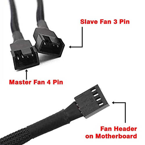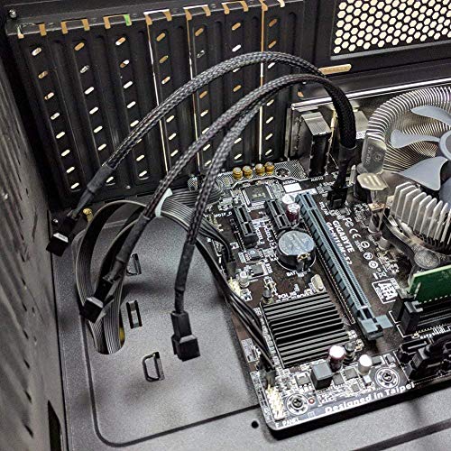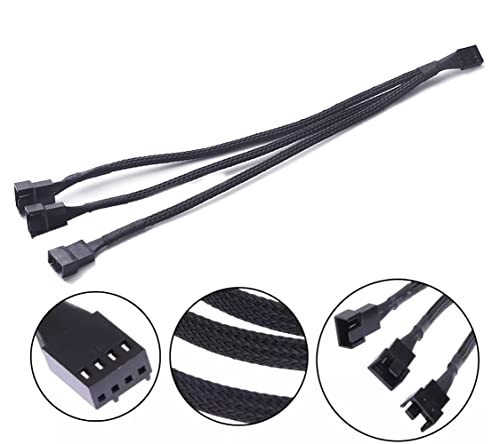 PWM Splitter Cable: Sleeved in Black Braiding With A 4 PIN Female Connector at One End and Splits to 3 Male Connectors at The Other End. increase Airflow: The Fan Splitter Cable Provide Additional Fan to increase Airflow in Your Computer Case. 1 to 3 Ways Fan Cable Splitter: The Fan Splitter Connects 3 Computer Case Fans to A Single Motherboard Fan Header, Compatible With 4 PIN and 3 PIN PMW Fan Connector. Convenient to Use: 26 cm Cable Allow You More Choice in Where You Want to Position Your Pwm or Fans inside Your Case. Applications: Suitable for CPU or computer case fan.