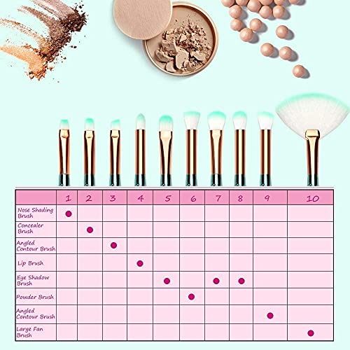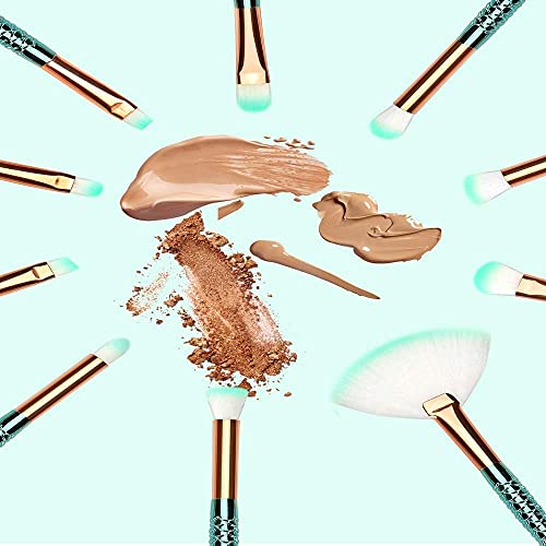DATNASAYAD Women's & Girl's Mermaid Makeup Brushes Set with One Pink Beauty Blender - (Pack of 10)