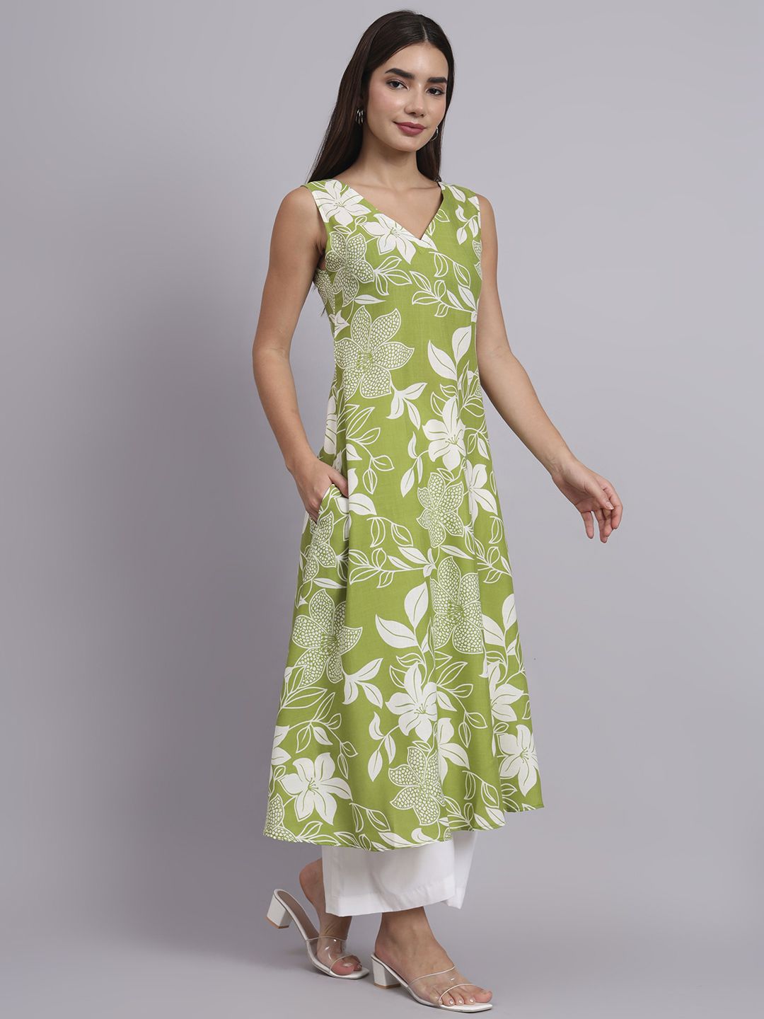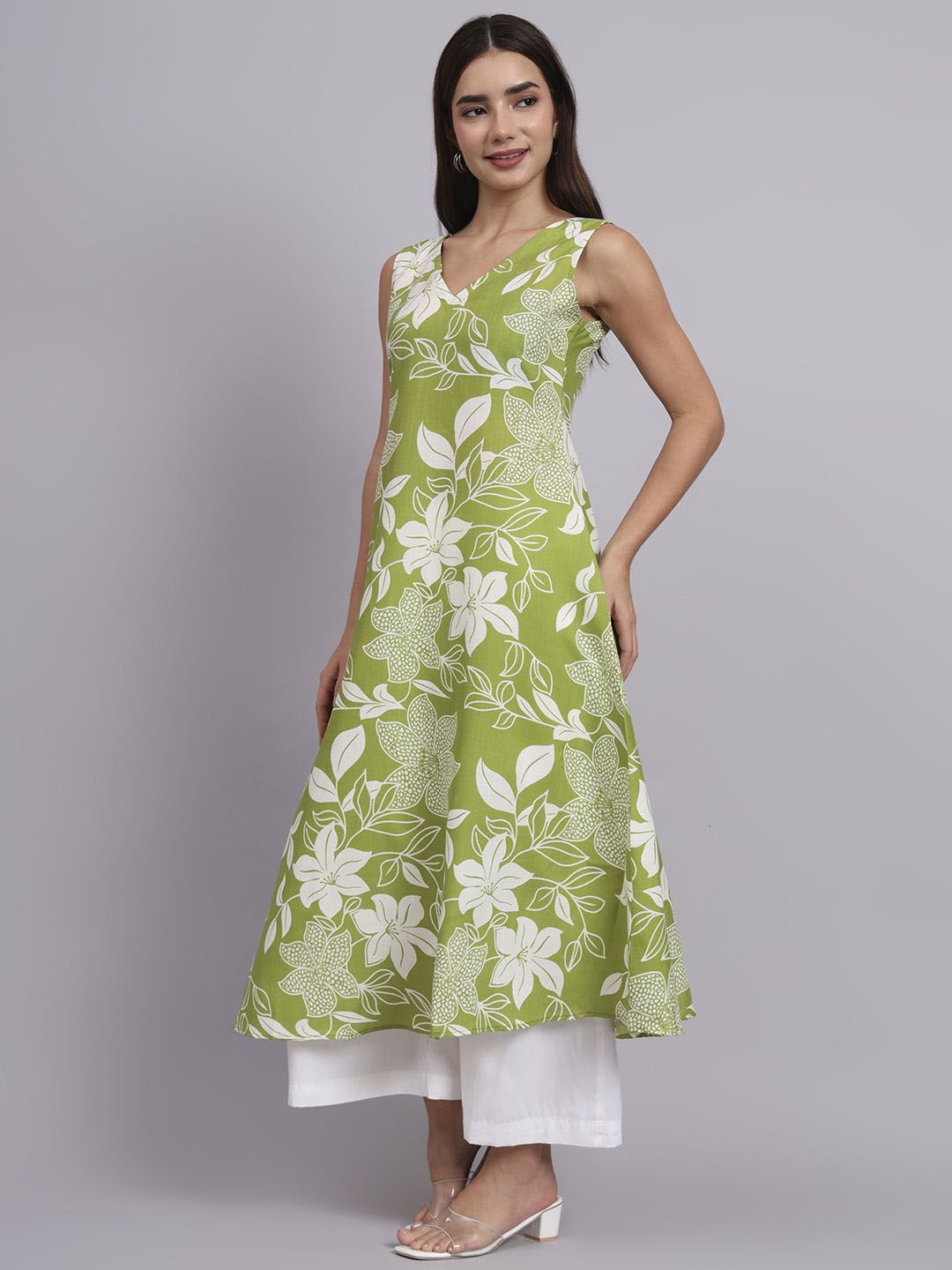 DHAKRE FASHION Women Floral Printed V-Neck A-Line Kurta with Palazzos