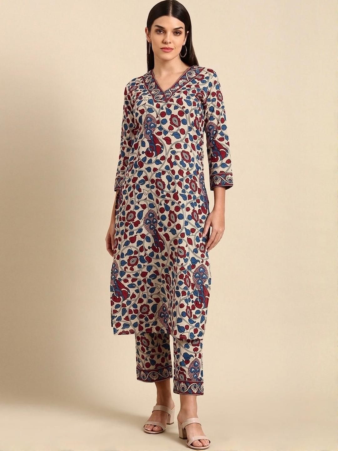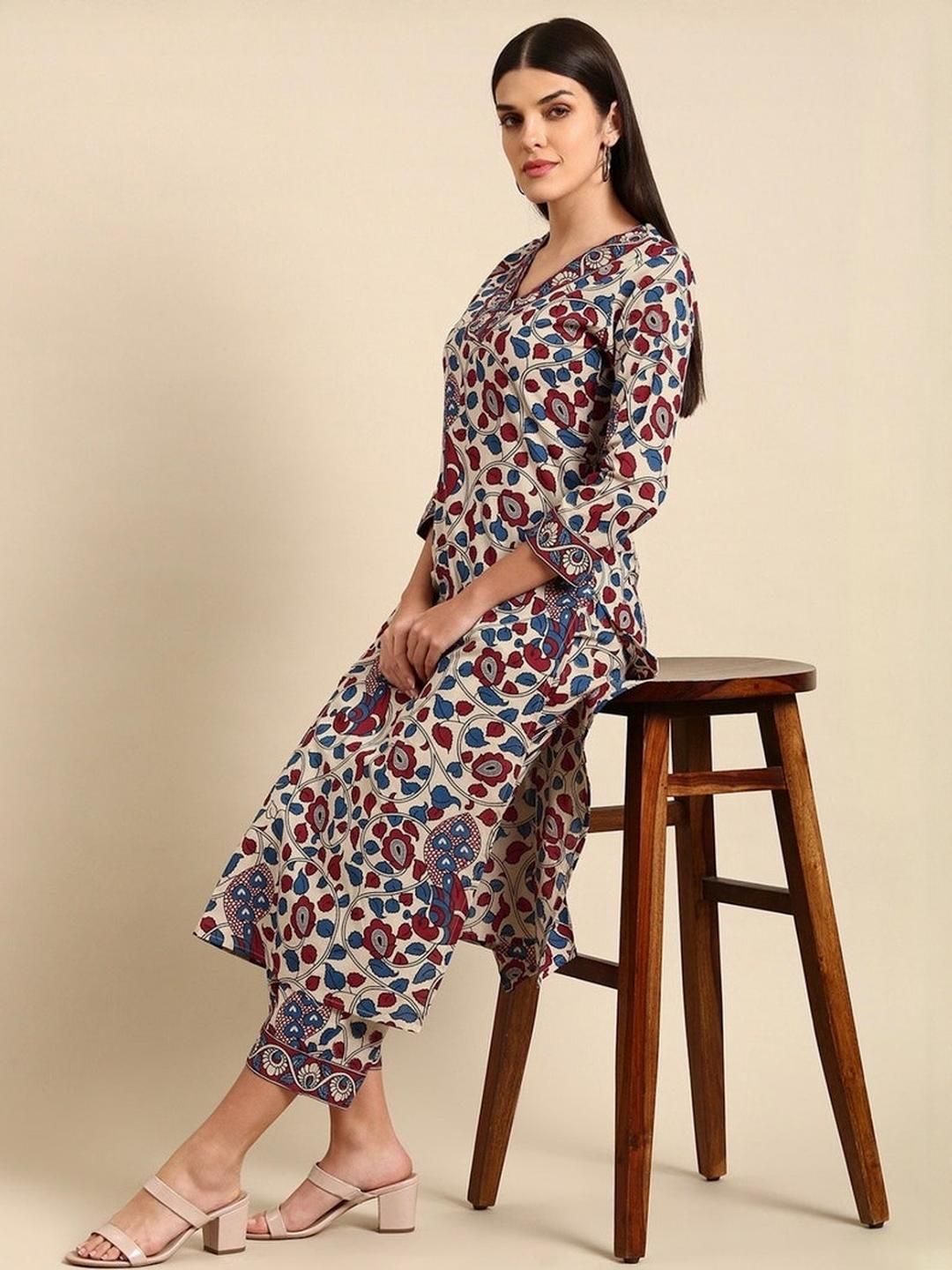 Dhibha Women Beige Cotton Blend Clothing Set