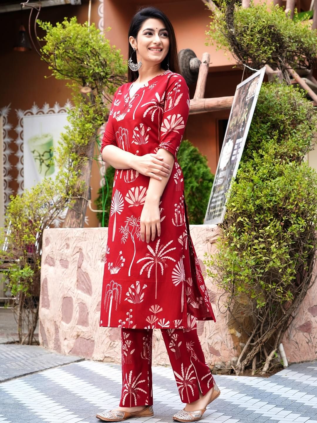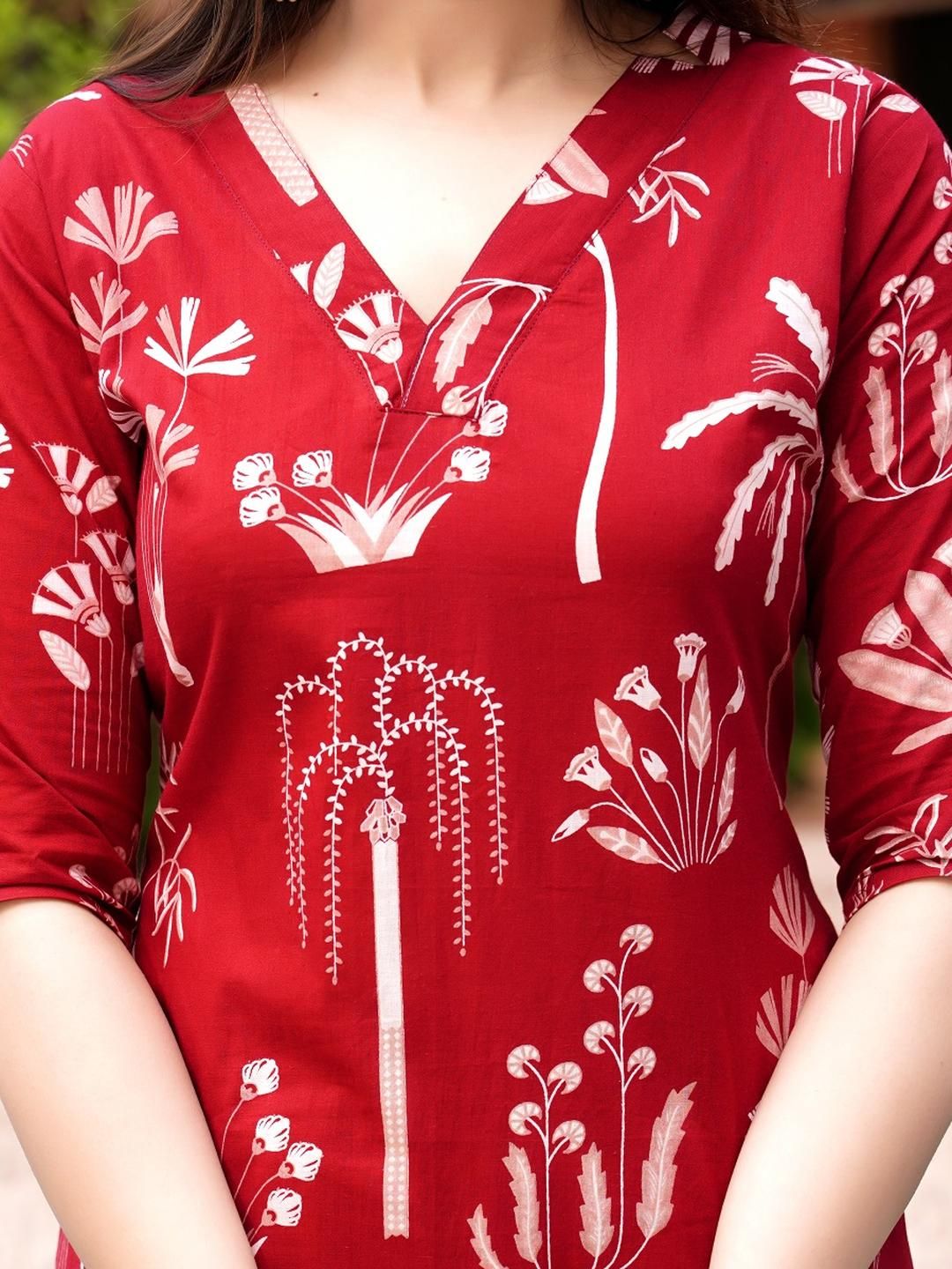 Dhibha Women Maroon Cotton Blend Clothing Set