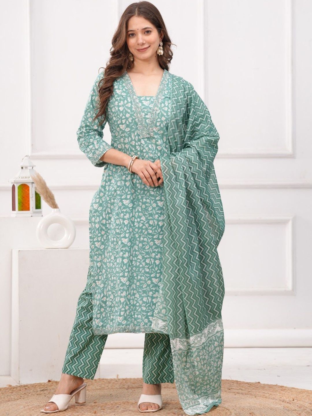 Dholiwal Fashion Women Floral Printed Kurta with Palazzo & Dupatta