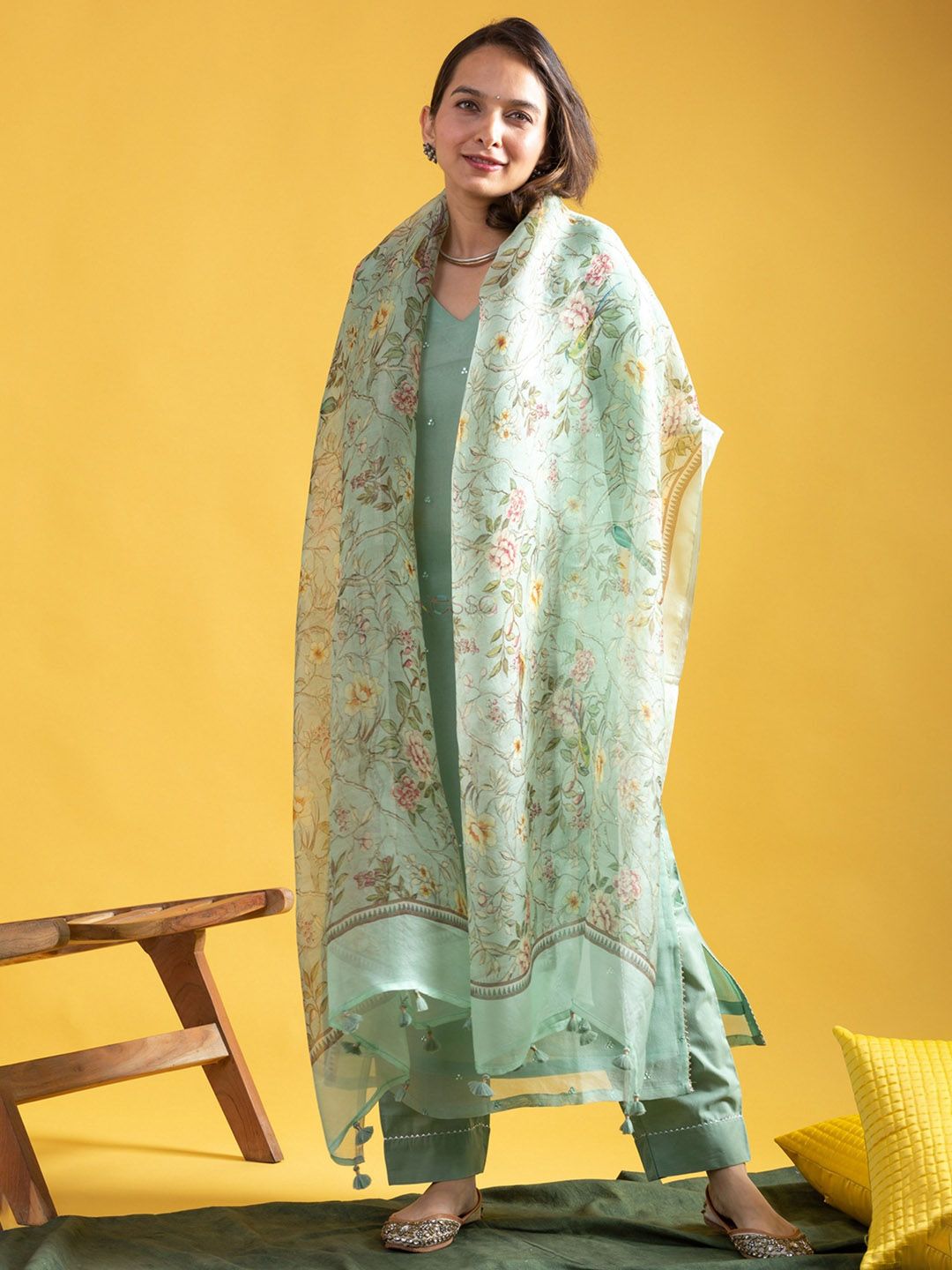 Buy this stylish DIVASTRI Embroidered V-Neck Mirror Work Straight Kurta With Trousers And Dupatta at Marincart Nepal. This product offers great quality and value. Perfect for those looking for the latest trends in fashion. Get yours now at unbeatable prices.
