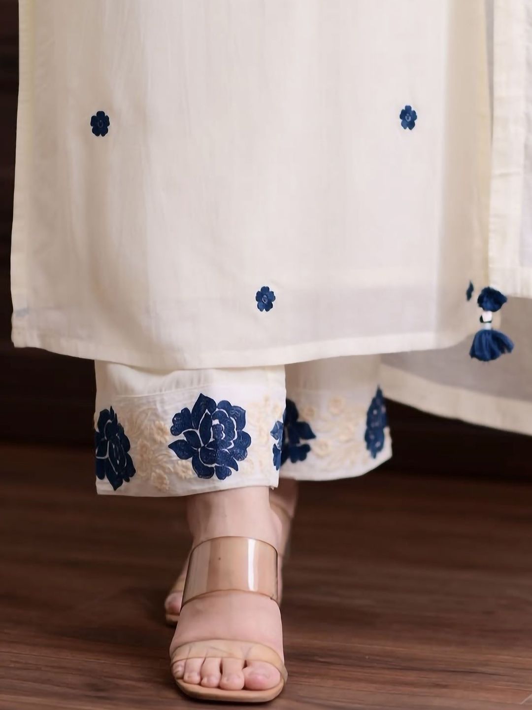 DIVASTRI Floral Embroidered Round Neck Regular Straight Knee Length Kurta Sets