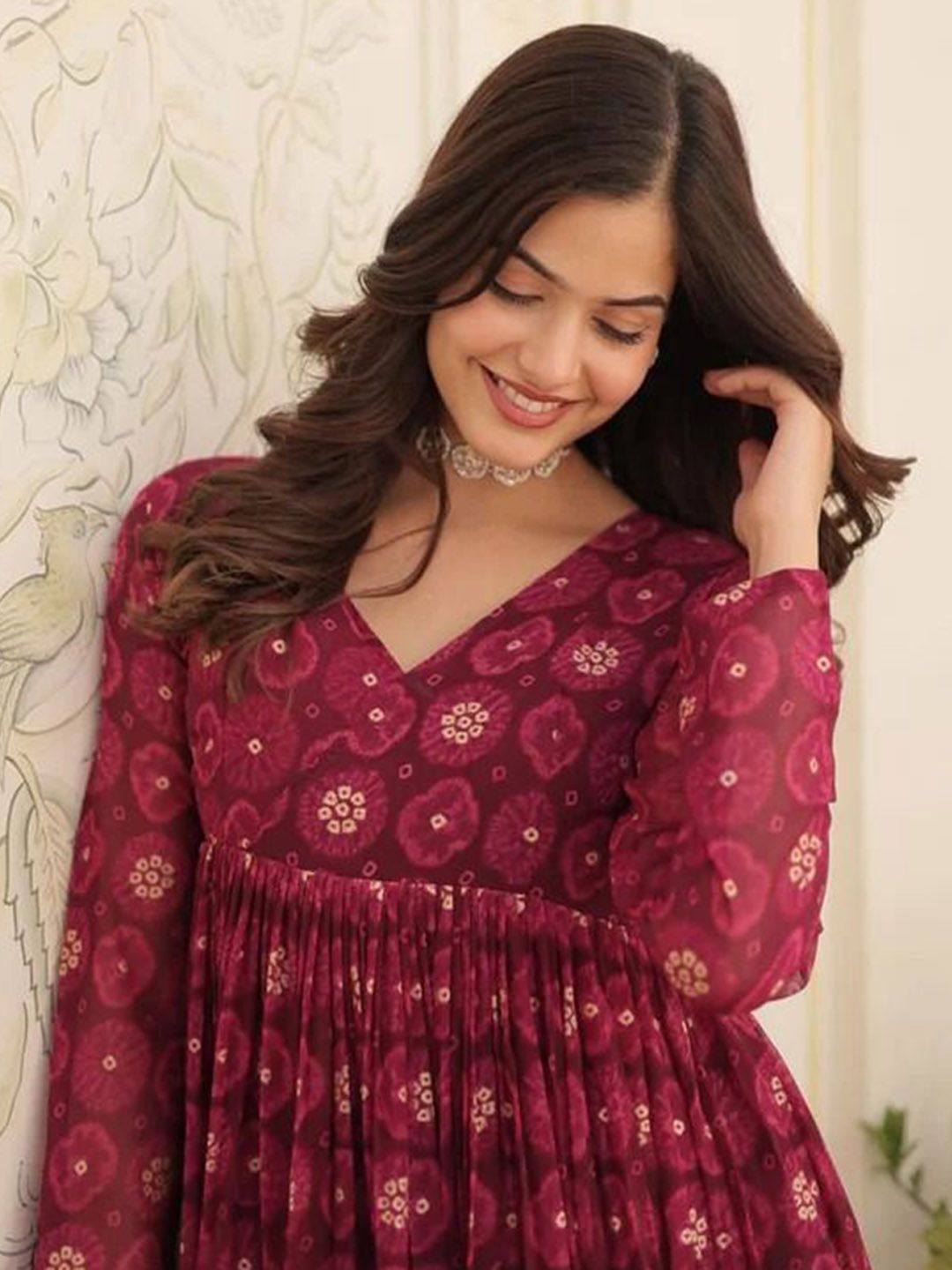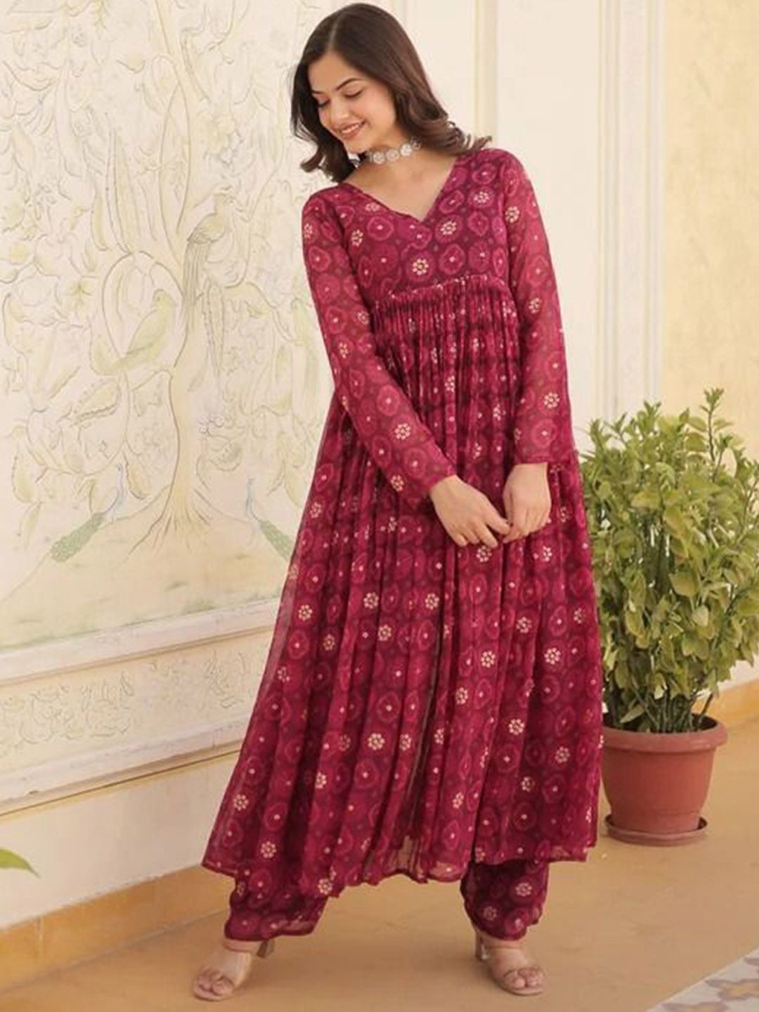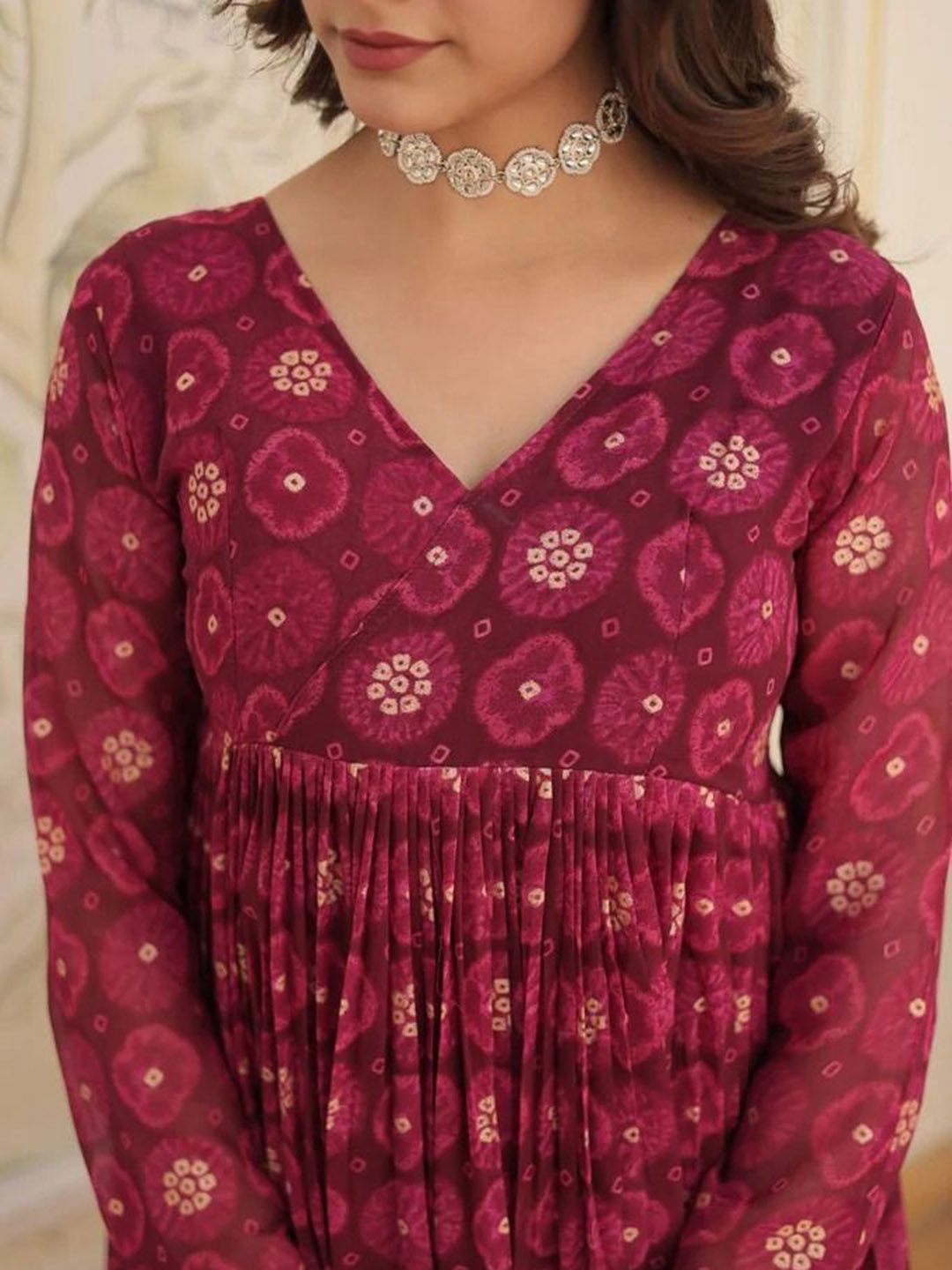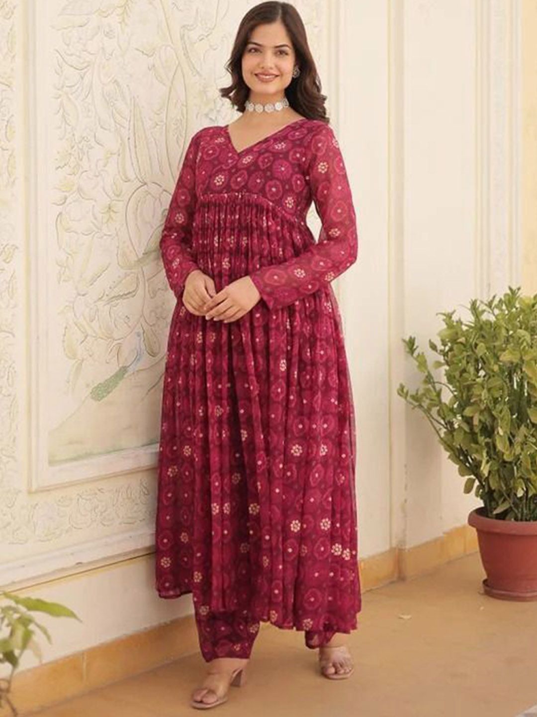 DIVASTRI Floral Printed Angrakha Silk Georgette Kurta With Trouser