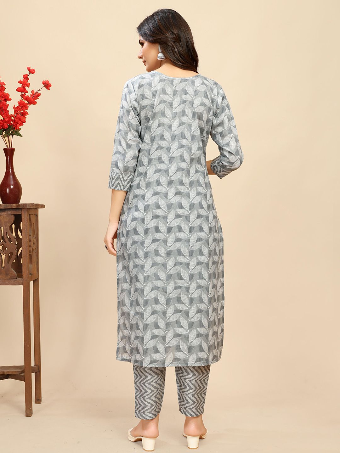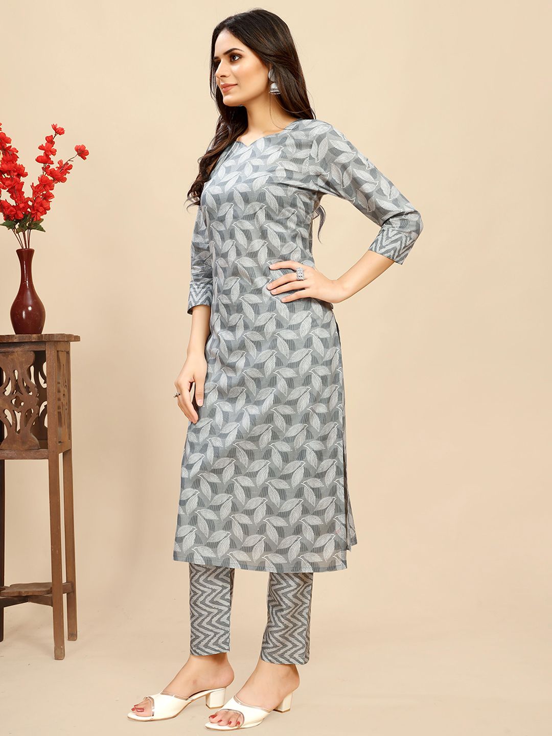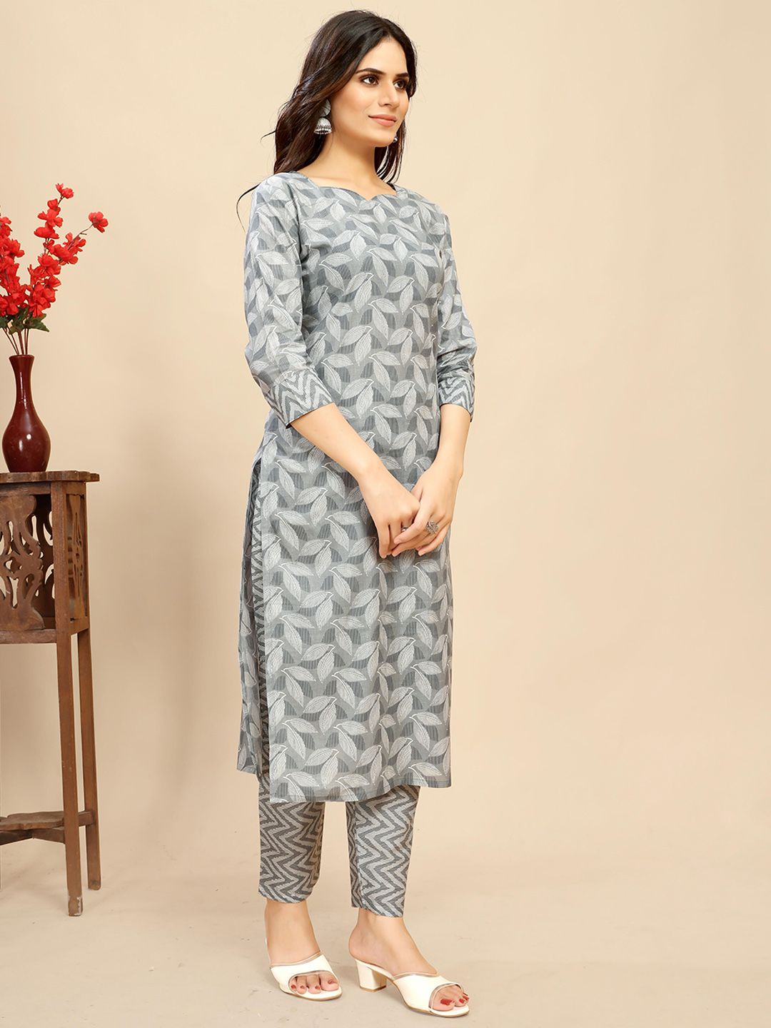 DIVASTRI Floral Printed Pure Cotton Straight Kurta With Trousers