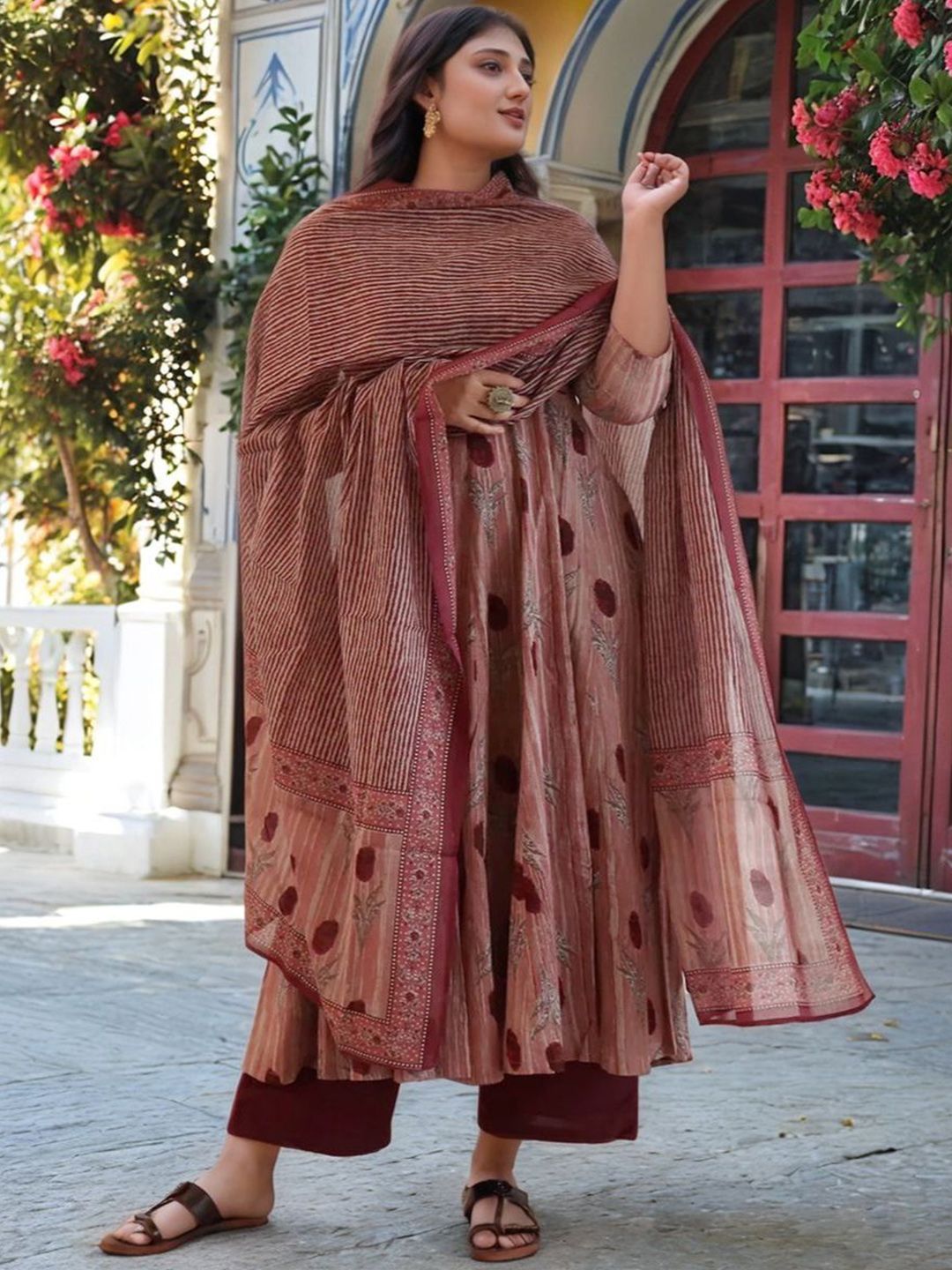 Buy this stylish DIVASTRI Floral Printed Round Neck Anarkali Kurta With Trousers & Dupatta at Marincart Nepal. This product offers great quality and value. Perfect for those looking for the latest trends in fashion. Get yours now at unbeatable prices.
