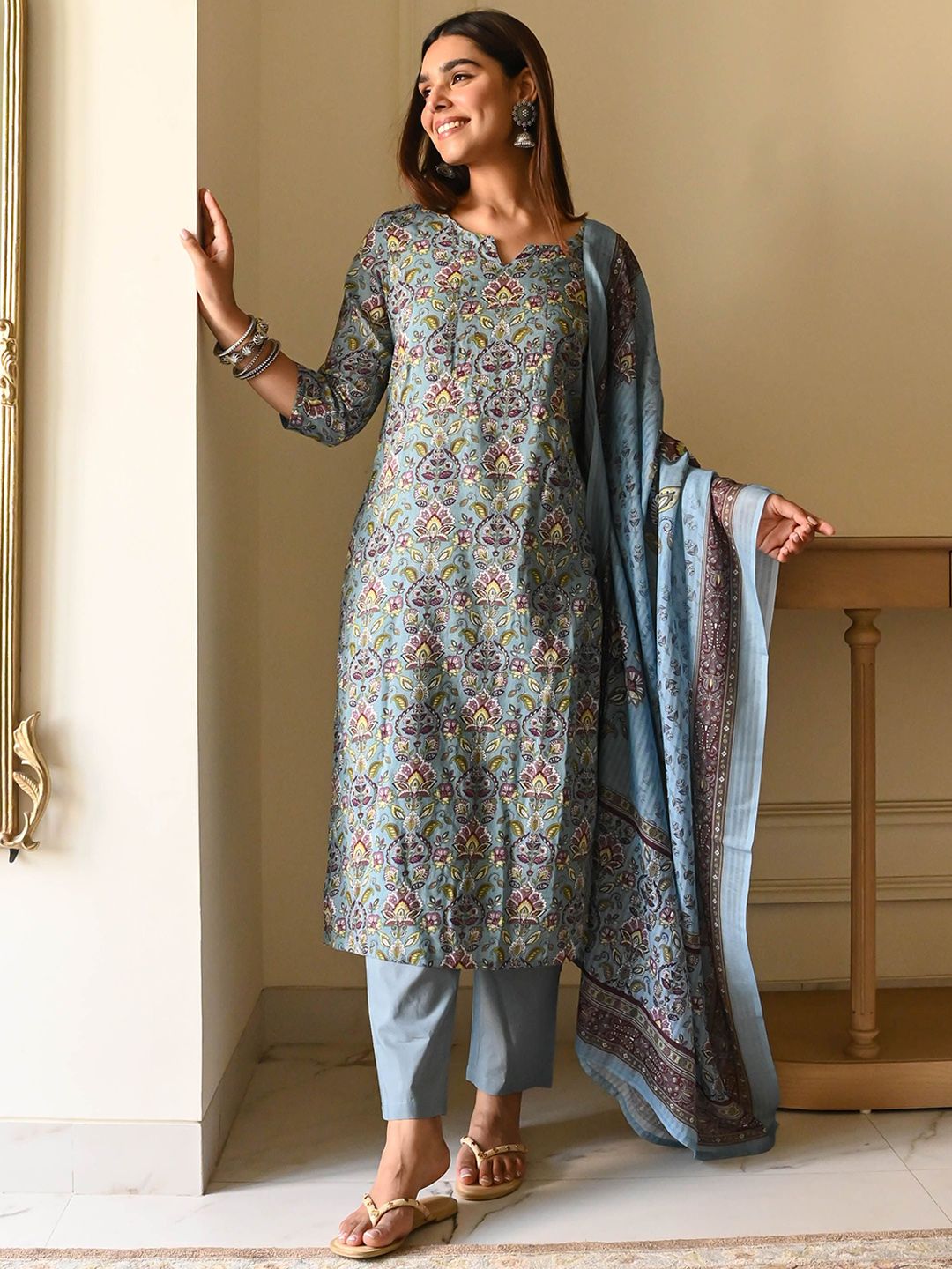 Buy this stylish DIVASTRI Floral Printed Stones Work Straight Kurta With Trousers & Dupatta at Marincart Nepal. This product offers great quality and value. Perfect for those looking for the latest trends in fashion. Get yours now at unbeatable prices.