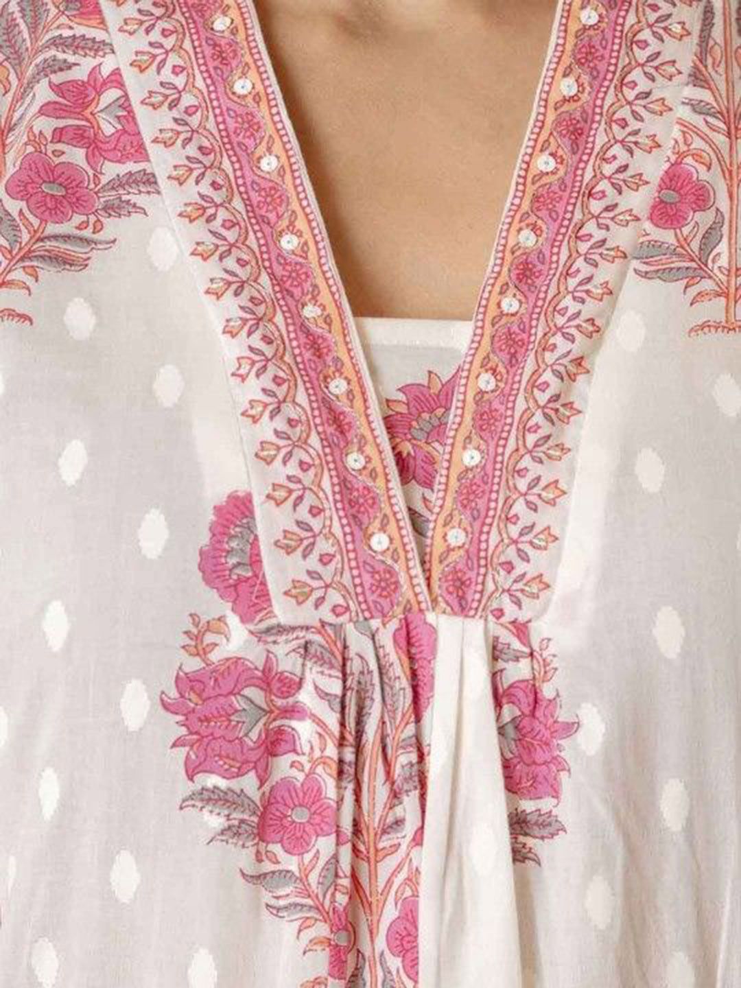 DIVASTRI Floral Printed V-Neck Pure Cotton A-Line Kurta With Palazzos & Dupatta