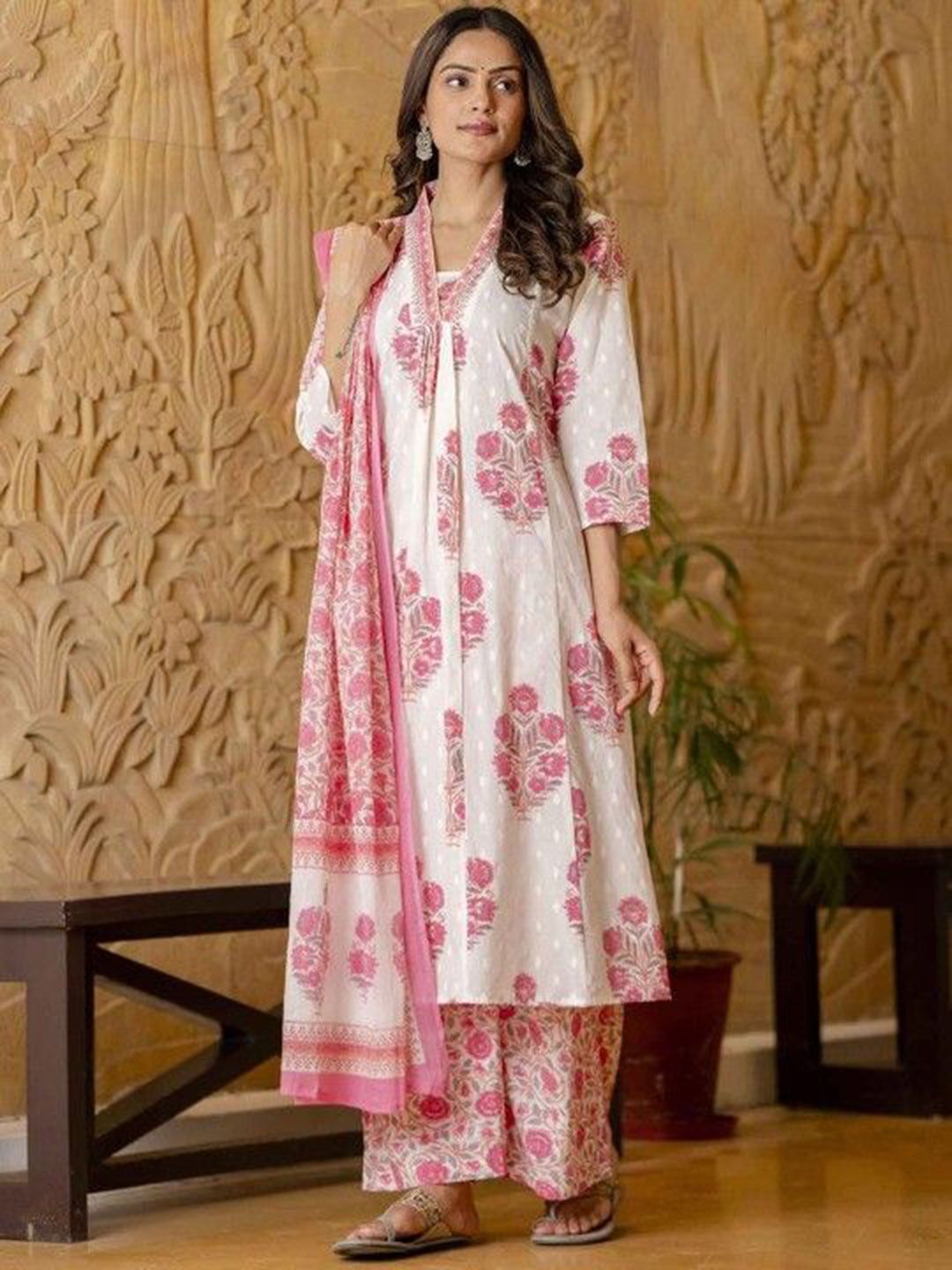 Buy this stylish DIVASTRI Floral Printed V-Neck Pure Cotton A-Line Kurta With Palazzos & Dupatta at Marincart Nepal. This product offers great quality and value. Perfect for those looking for the latest trends in fashion. Get yours now at unbeatable prices.