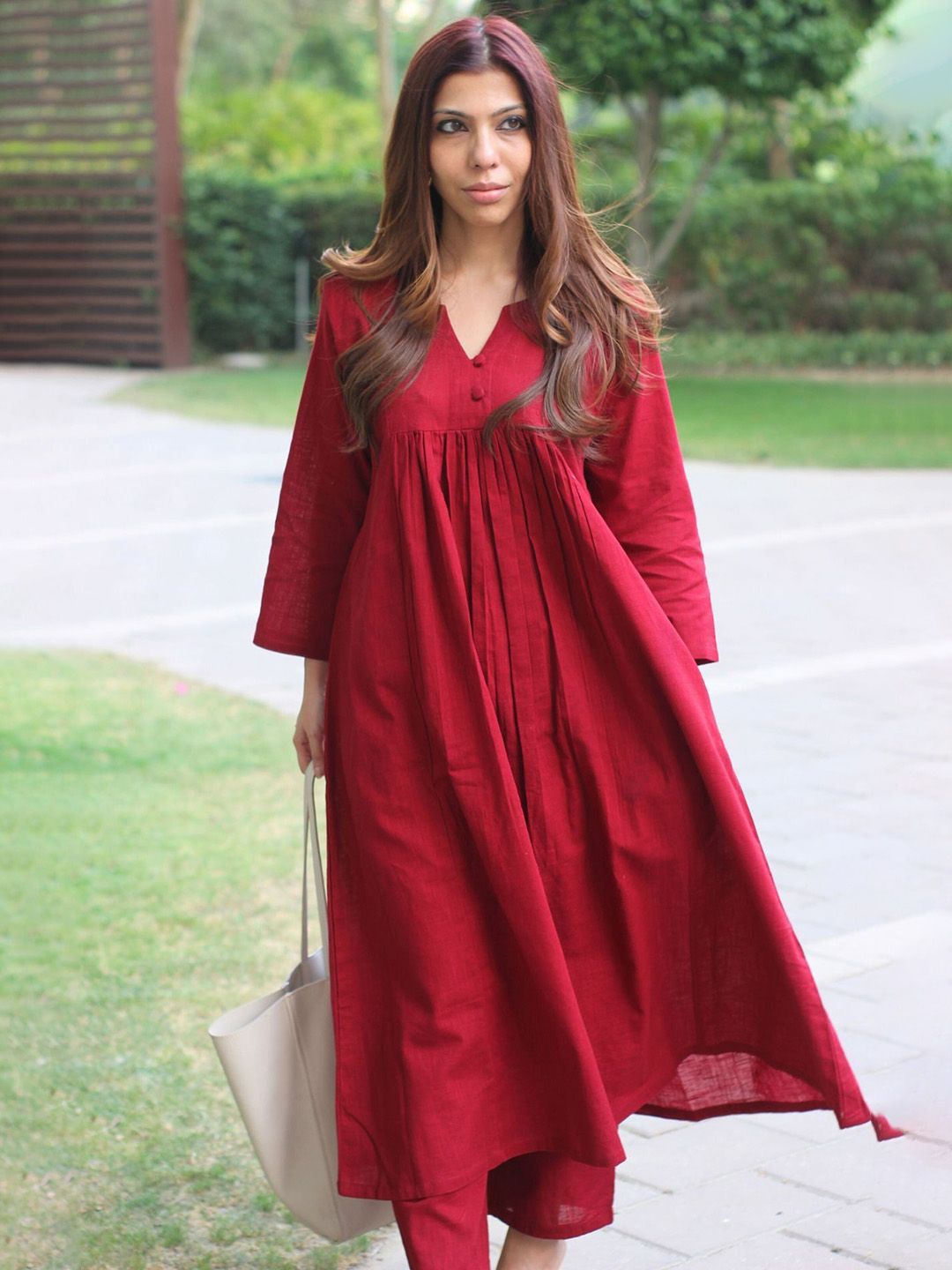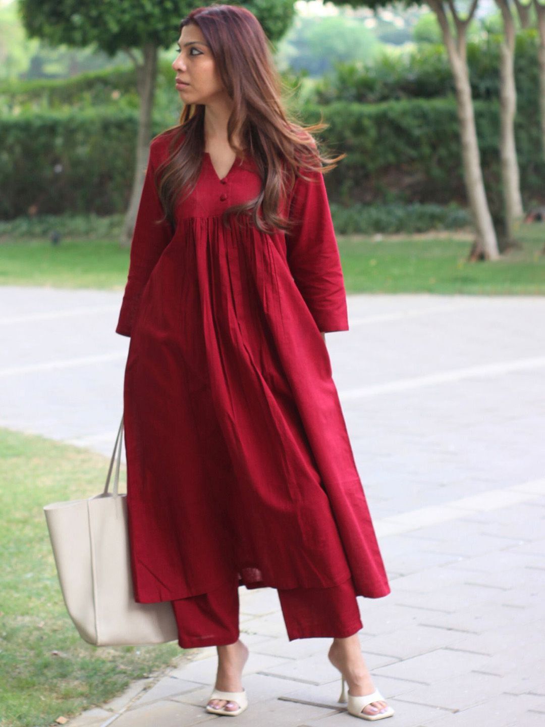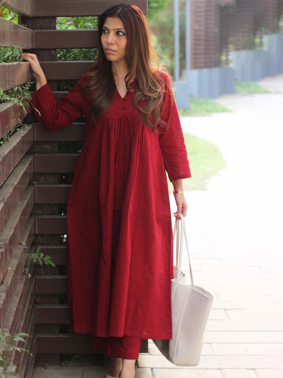 DIVASTRI V-Neck Straight Kurta With Trousers