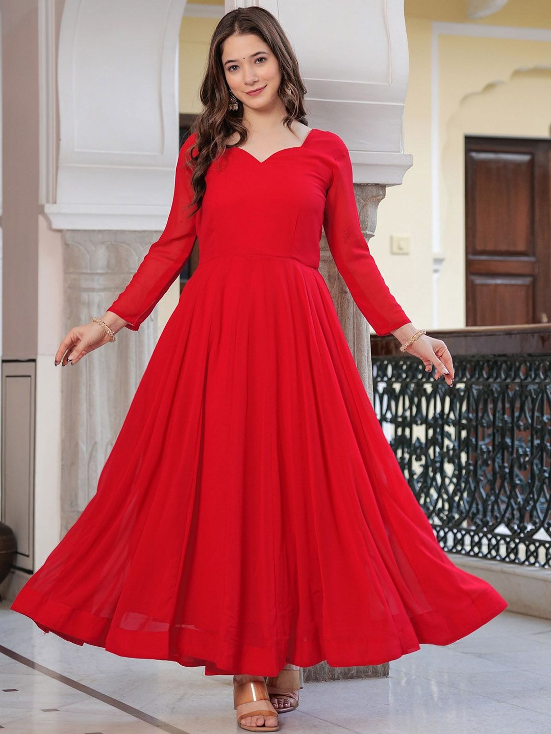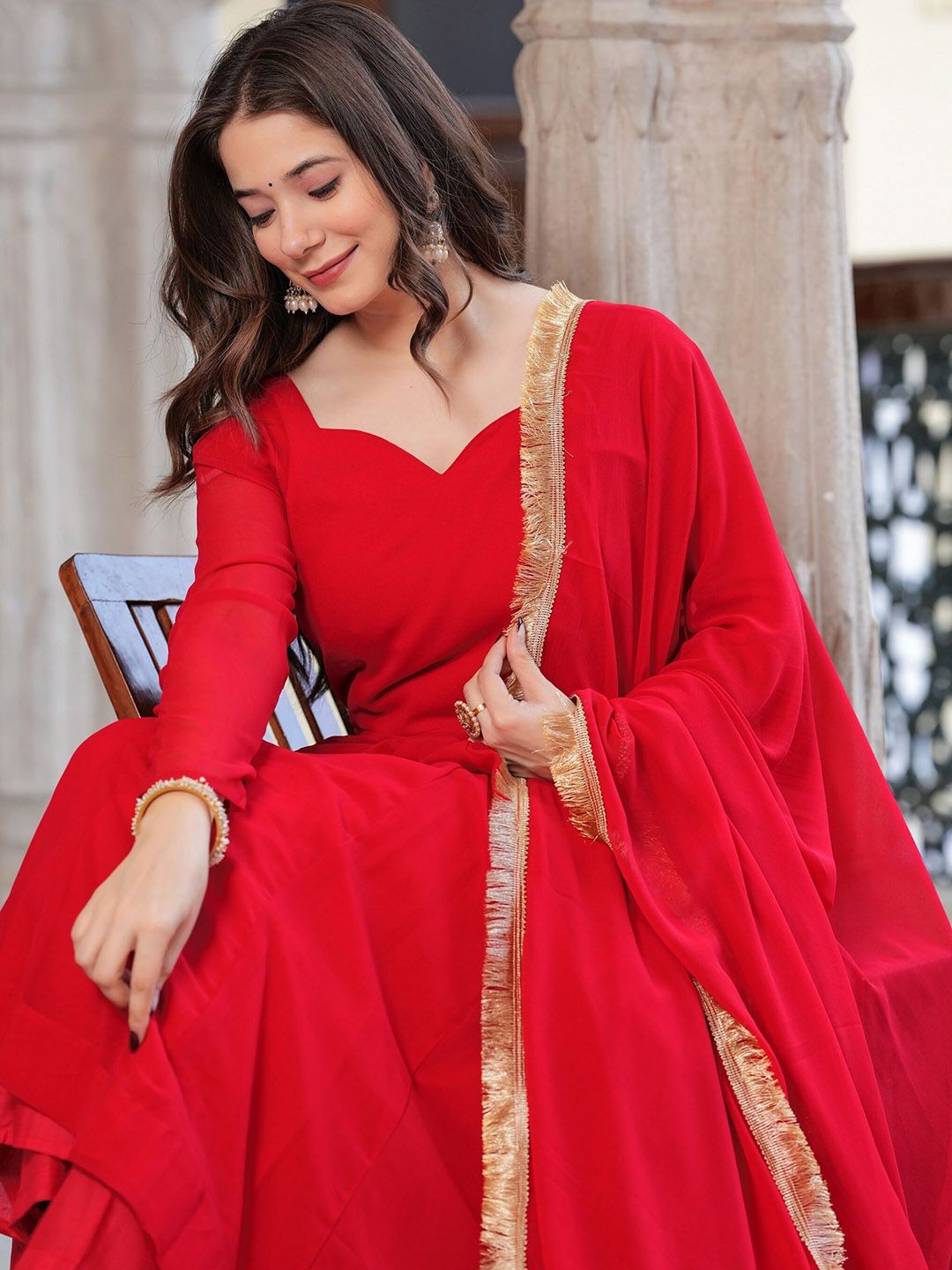 DIVASTRI Women Anarkali Georgette Kurta Set With Dupatta