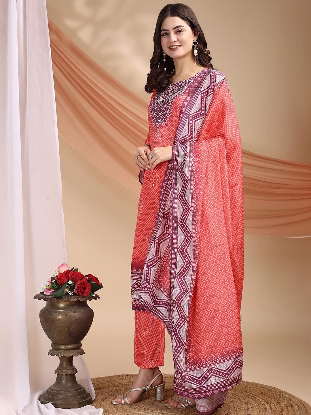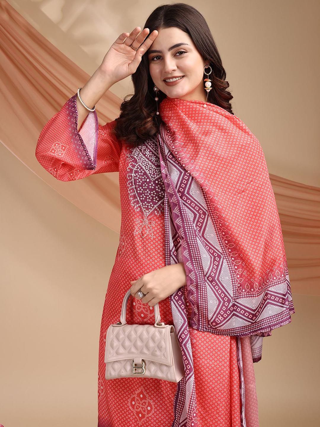DIVASTRI Women Bandhani Printed Kurta with Trousers & Dupatta