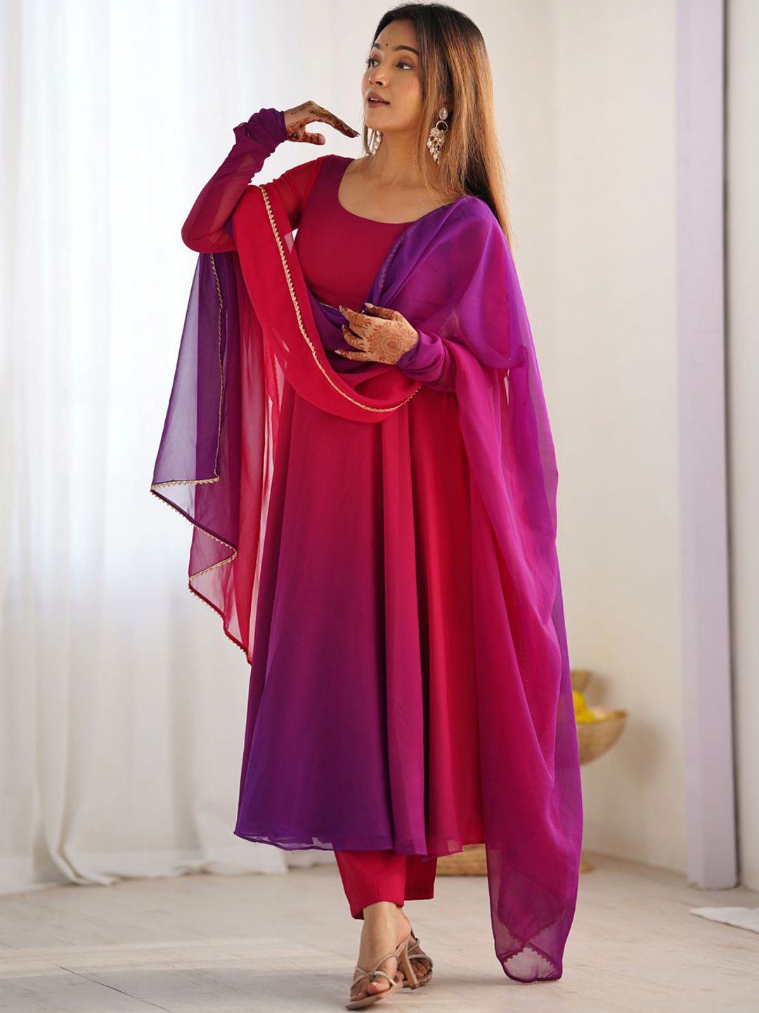 DIVASTRI Women Dyed Kurta with Trousers & Dupatta