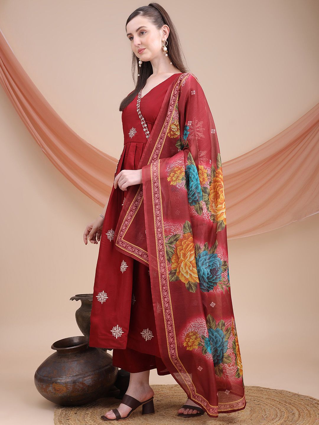 DIVASTRI Women Embroidered Angrakha Kurta with Trousers & Dupatta