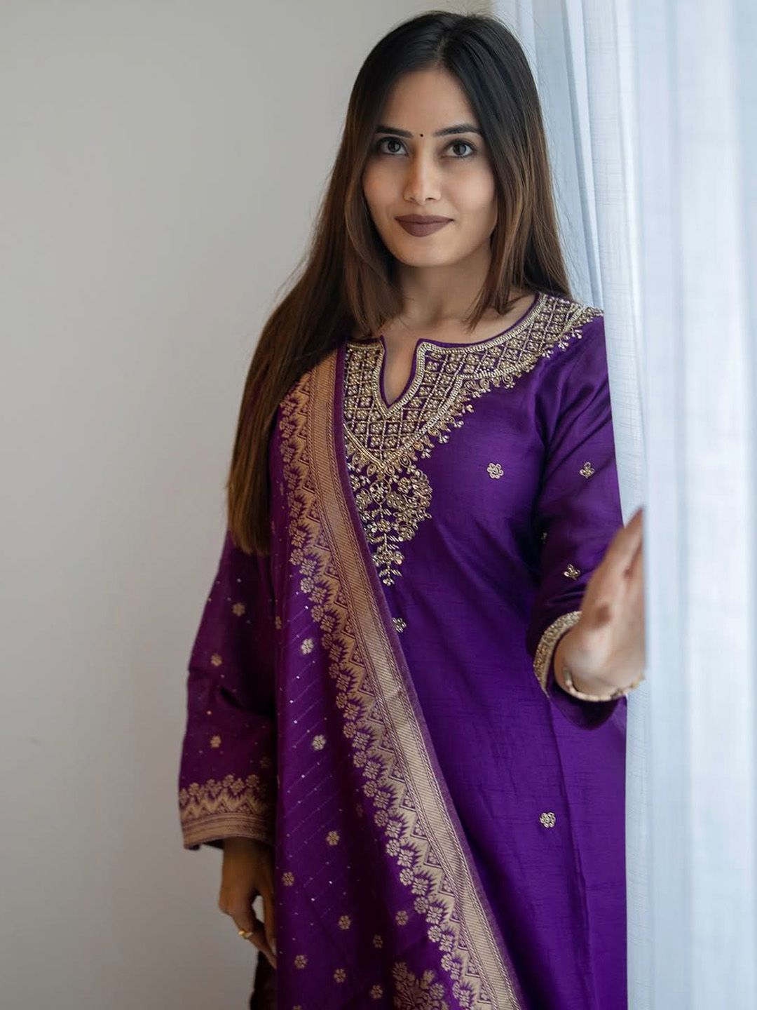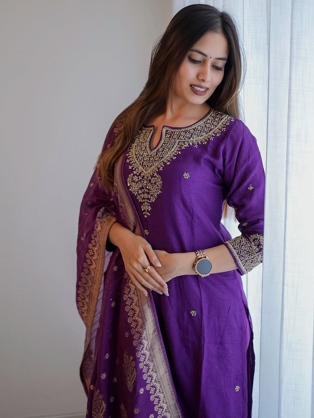 DIVASTRI Women Ethnic Motifs Beads and Stones Kurta & Trousers With Dupatta