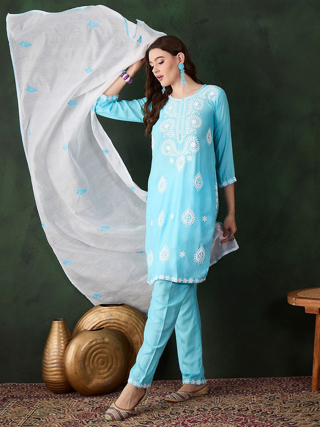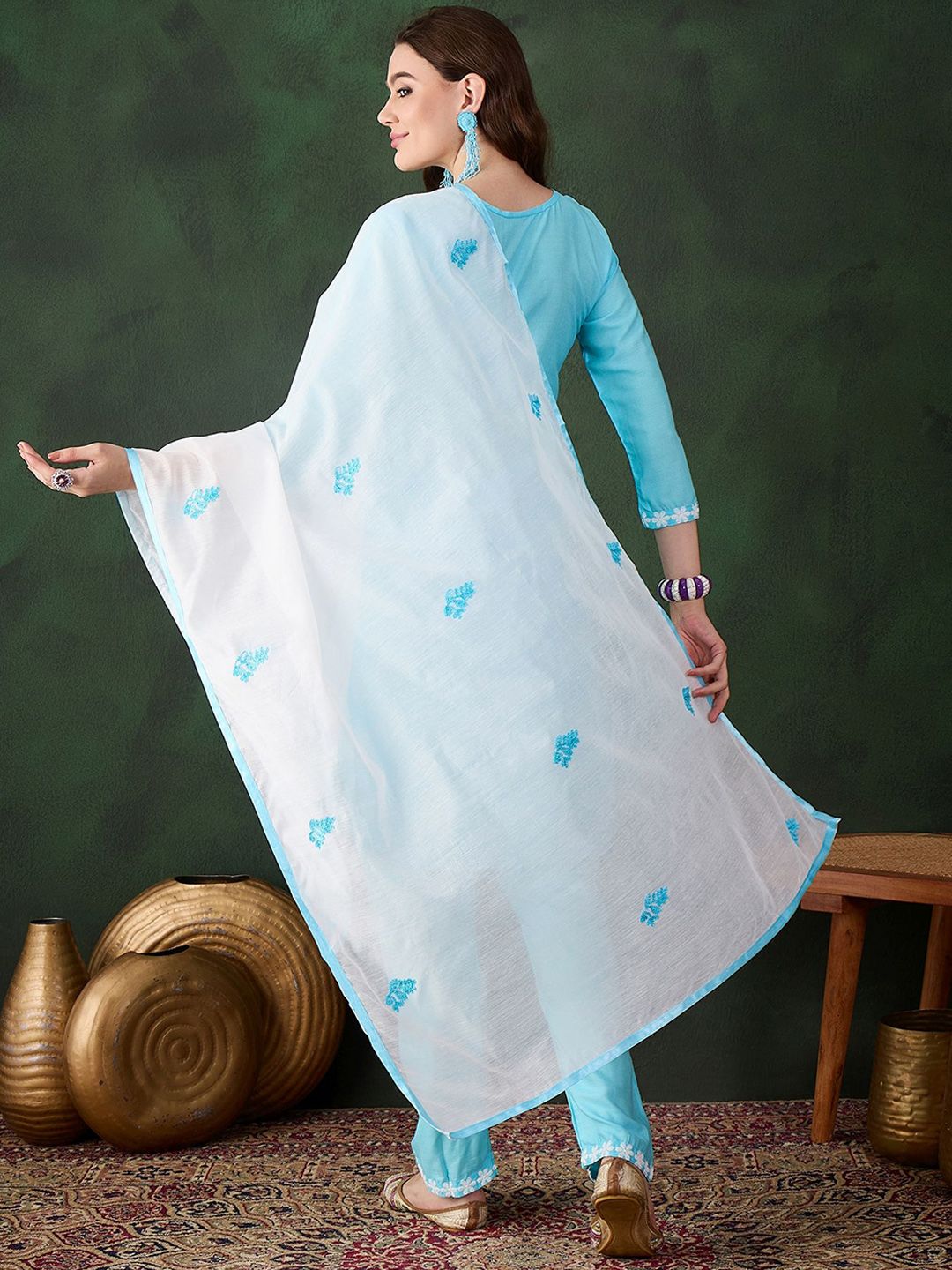 DIVASTRI Women Ethnic Motifs Embroidered A-Line Kurta with Trouser & Dupatta