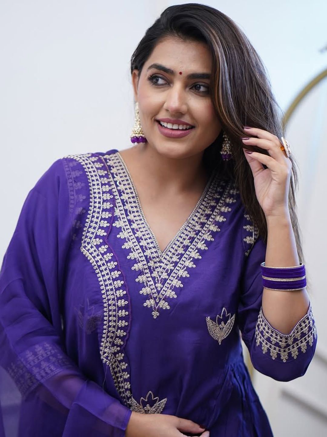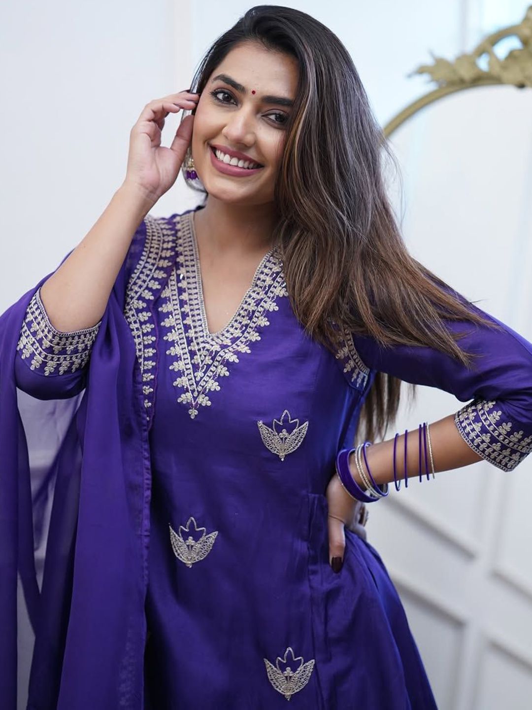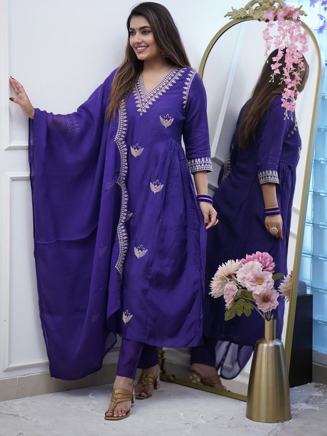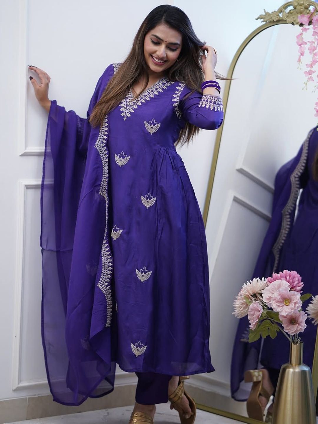 DIVASTRI Women Ethnic Motifs Embroidered Anarkali Kurta with Trousers & Dupatta
