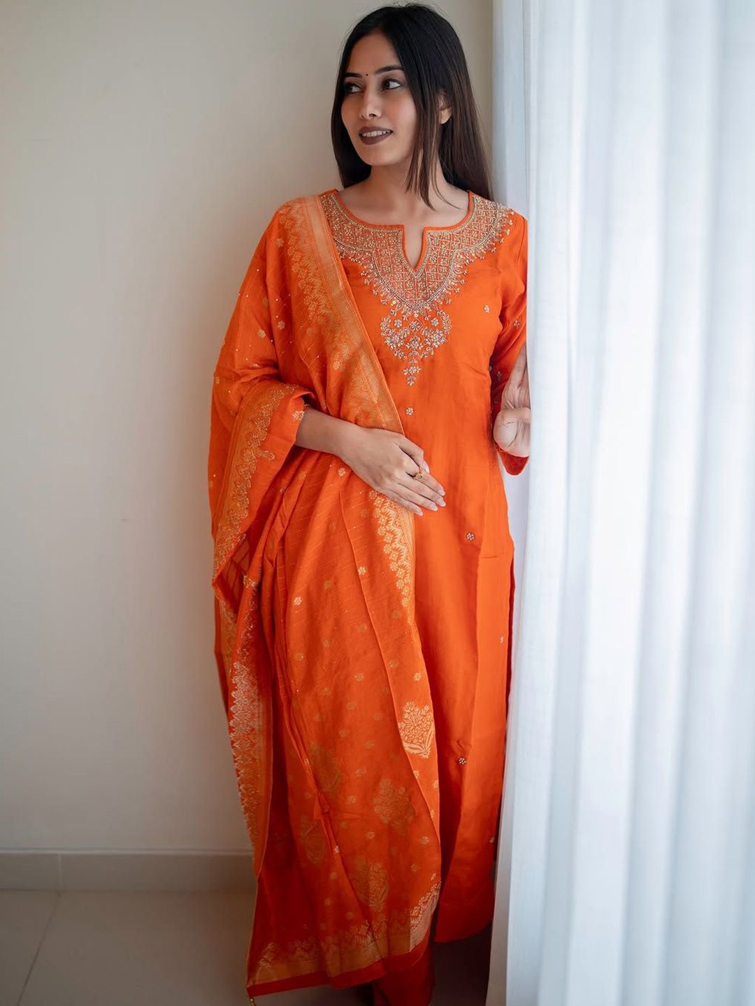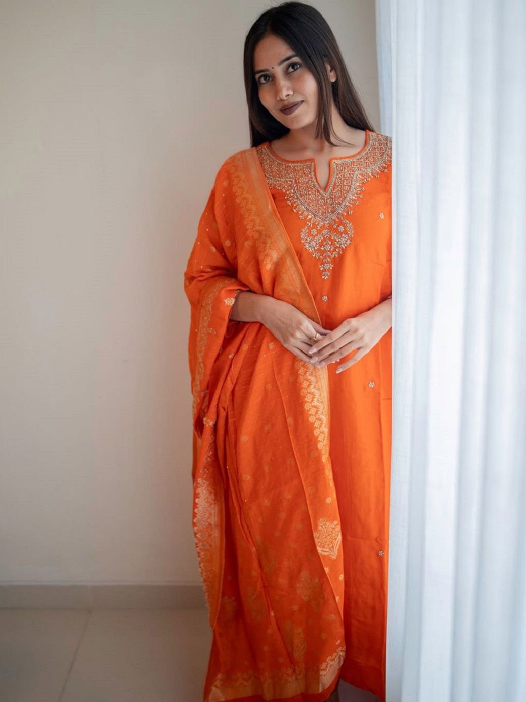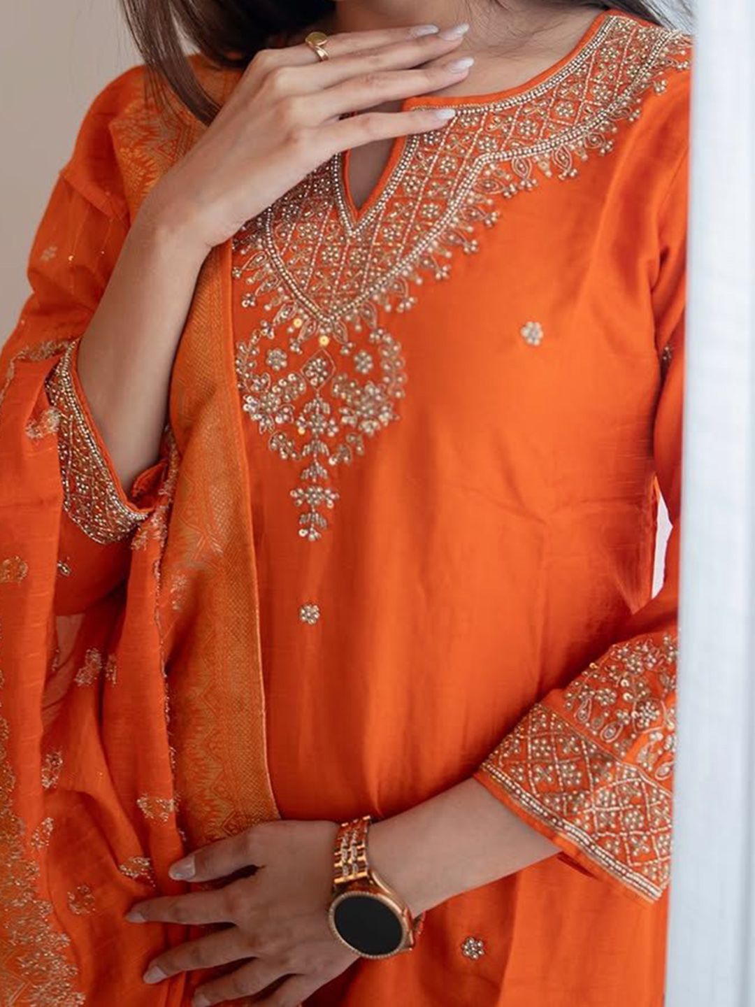 DIVASTRI Women Ethnic Motifs Embroidered Beads and Stones Kurta with Trousers & Dupatta