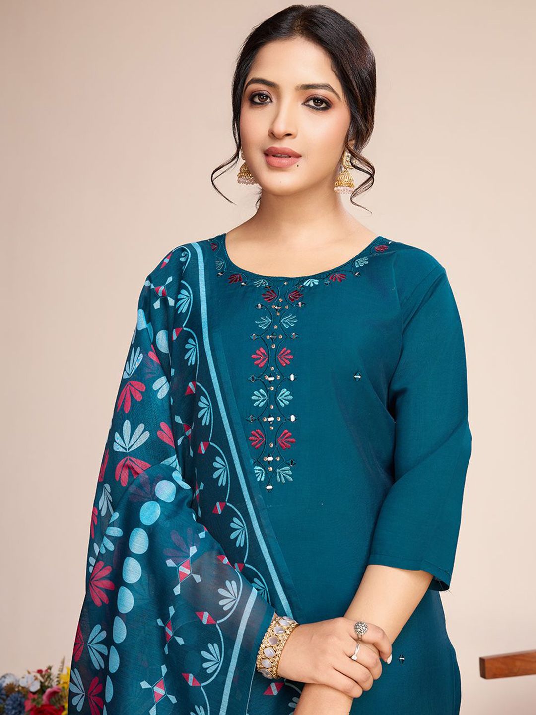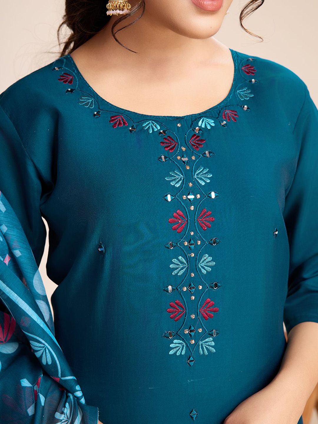 DIVASTRI Women Ethnic Motifs Embroidered Kurta with Trouser & Dupatta