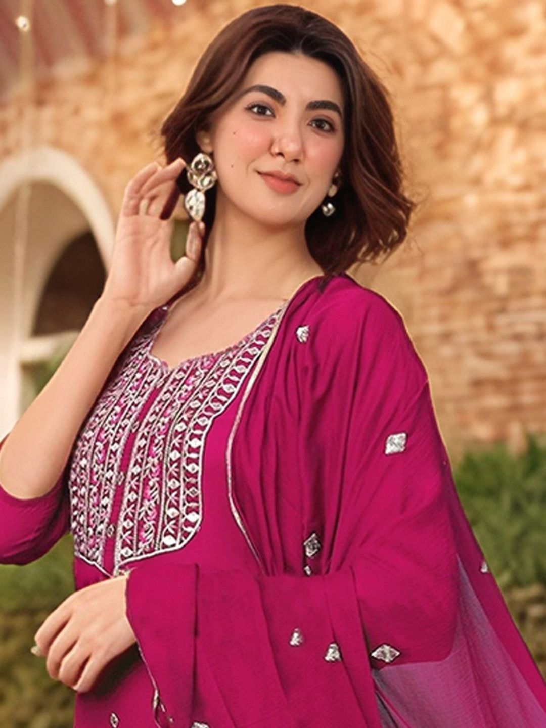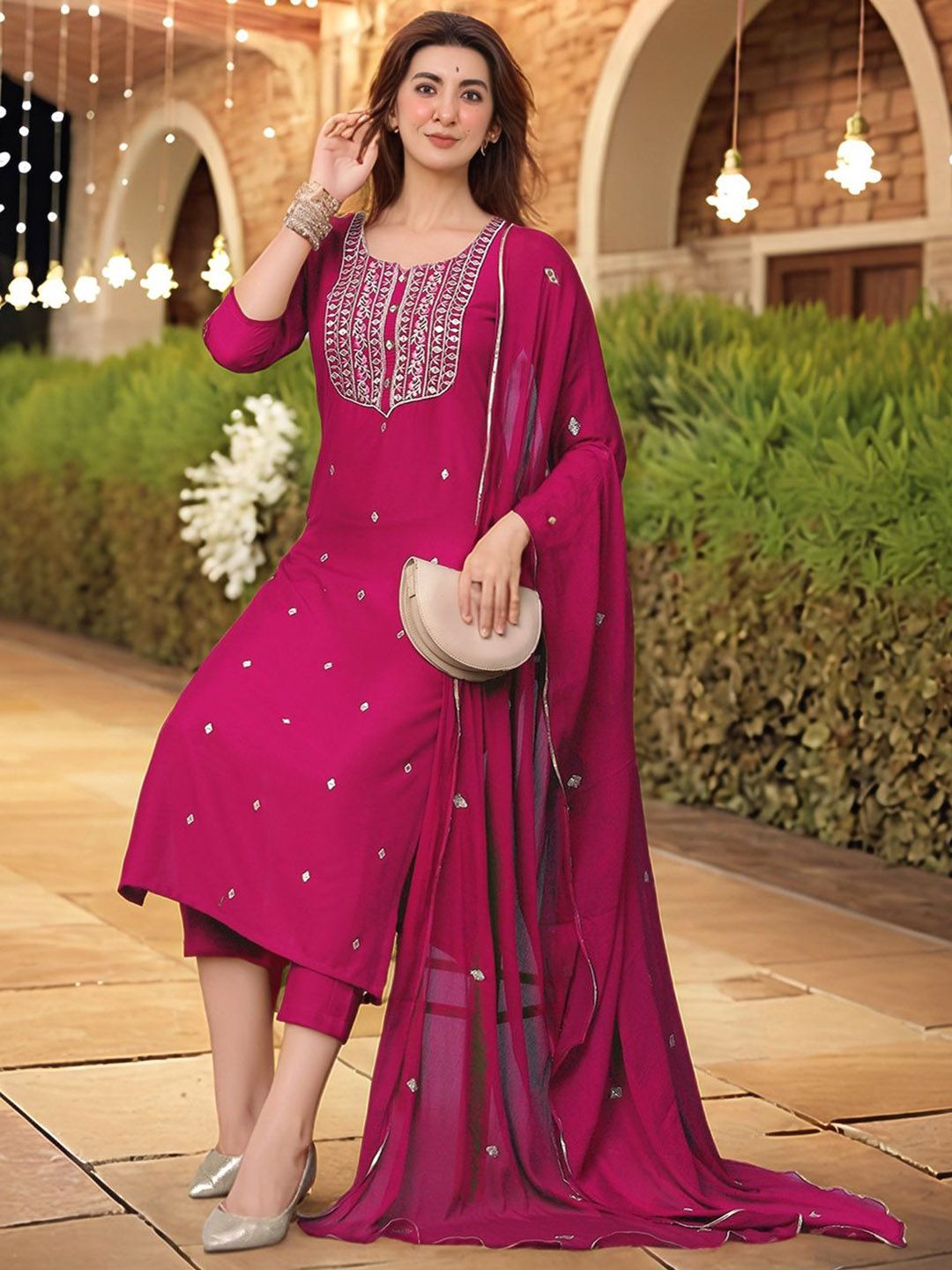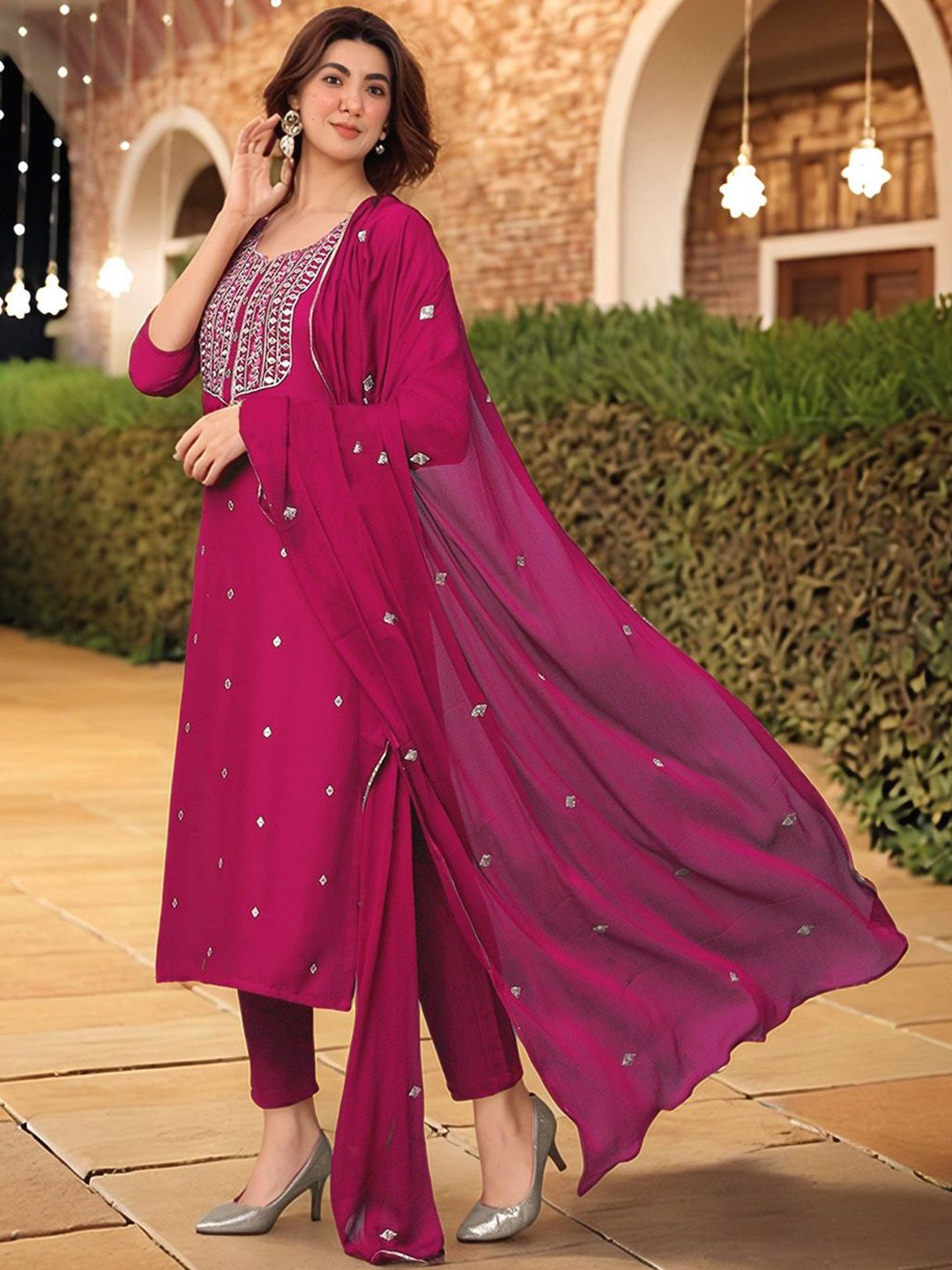 DIVASTRI Women Ethnic Motifs Embroidered Kurta with Trousers & Dupatta