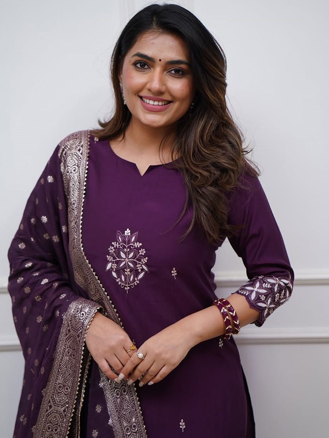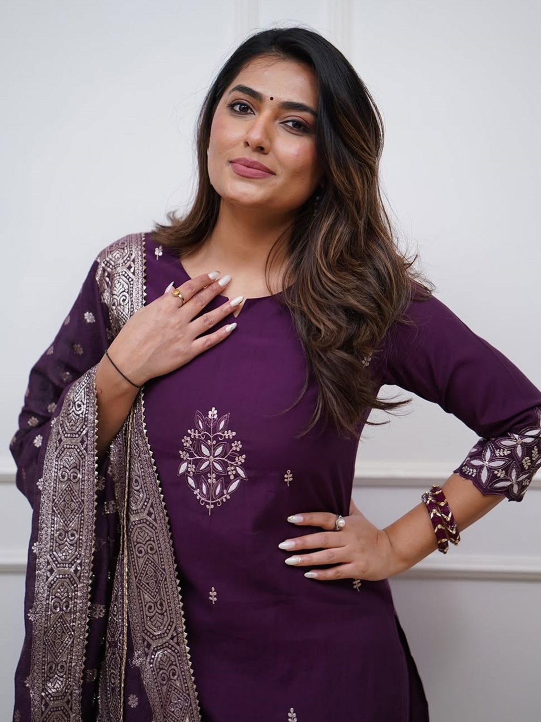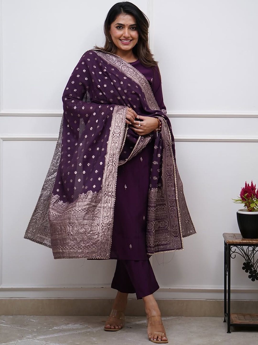 DIVASTRI Women Ethnic Motifs Embroidered Regular Kurta & Trouser With Dupatta