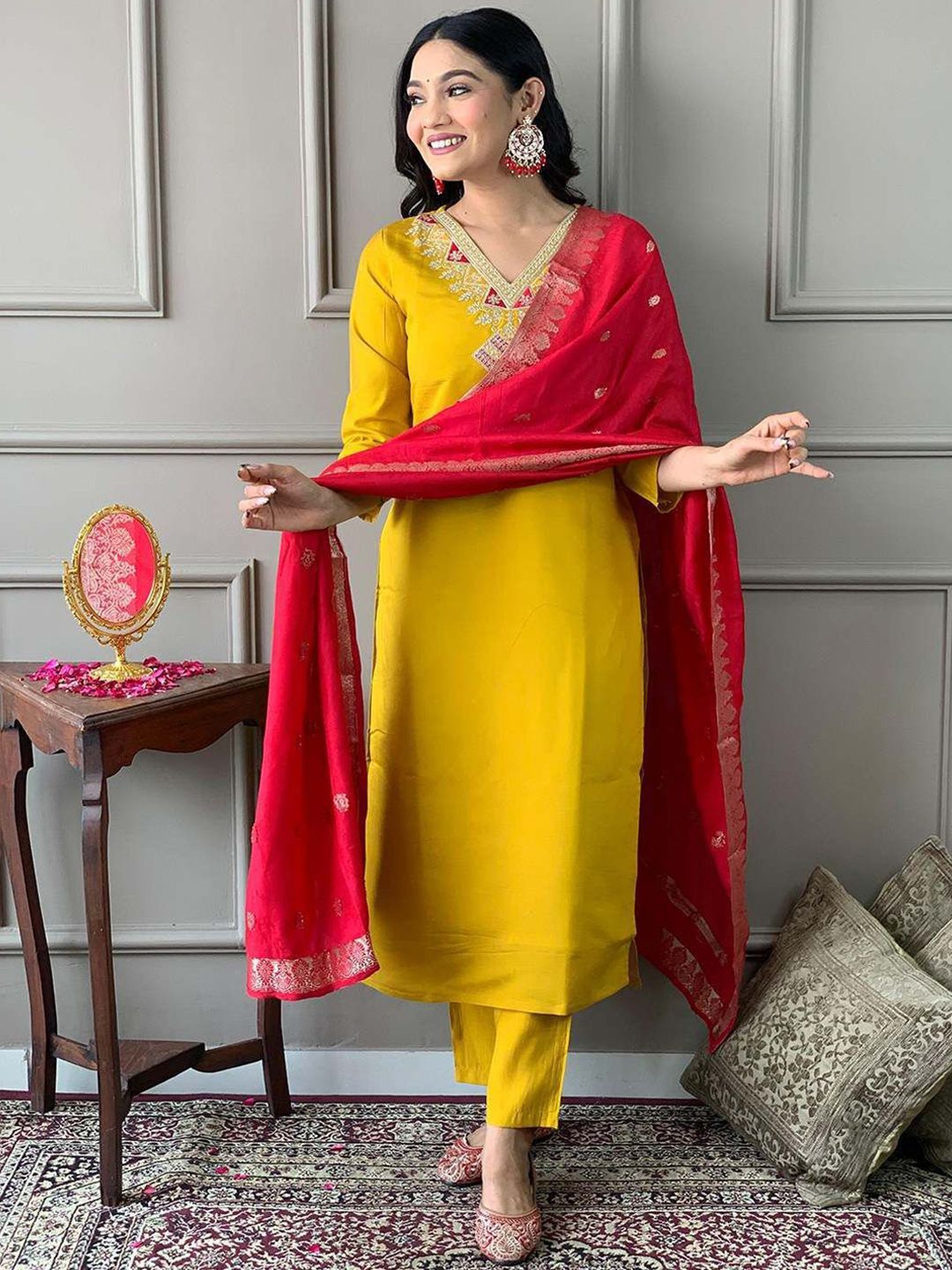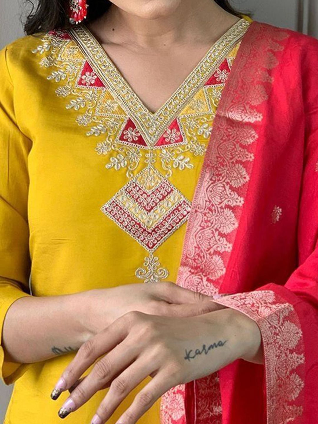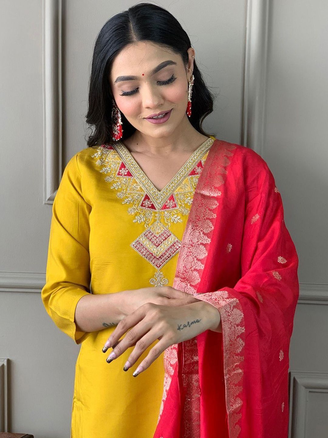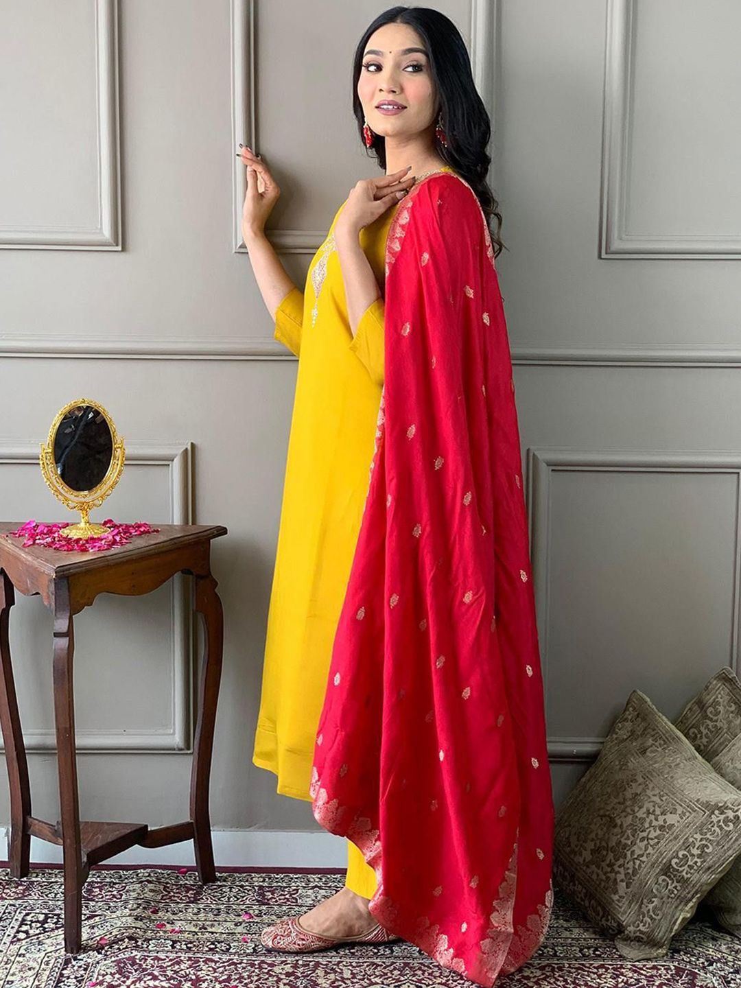 DIVASTRI Women Ethnic Motifs Embroidered Regular Kurta Set With Dupatta