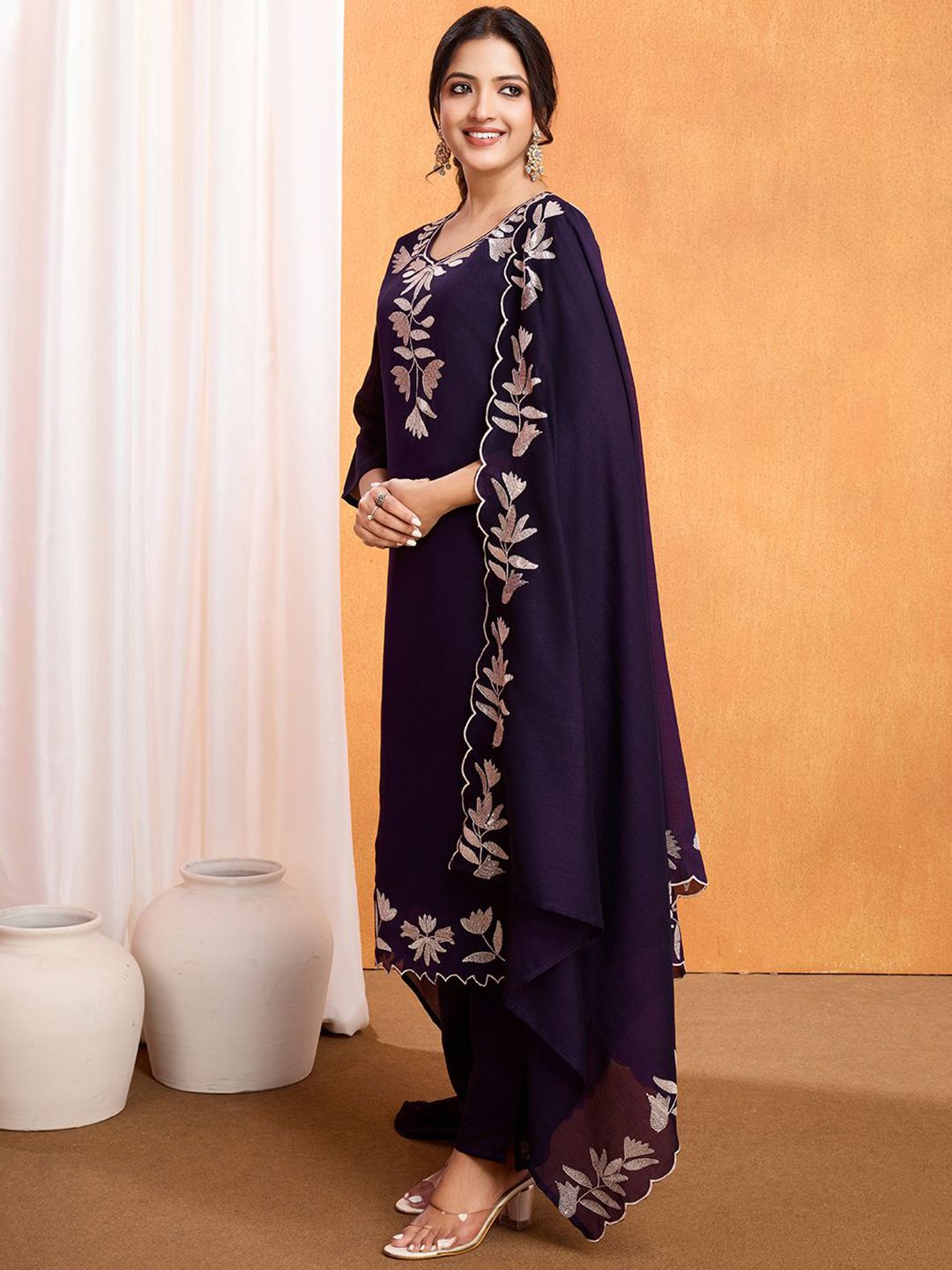 DIVASTRI Women Ethnic Motifs Embroidered Regular Thread Work Kurta With Trouser & Dupatta