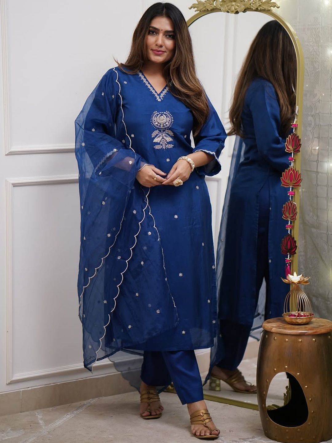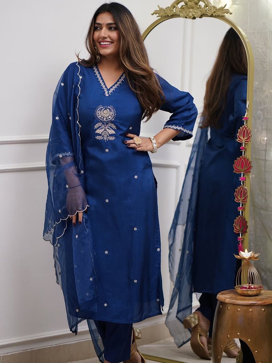DIVASTRI Women Ethnic Motifs Embroidered Sequined Kurta with Trousers & Dupatta