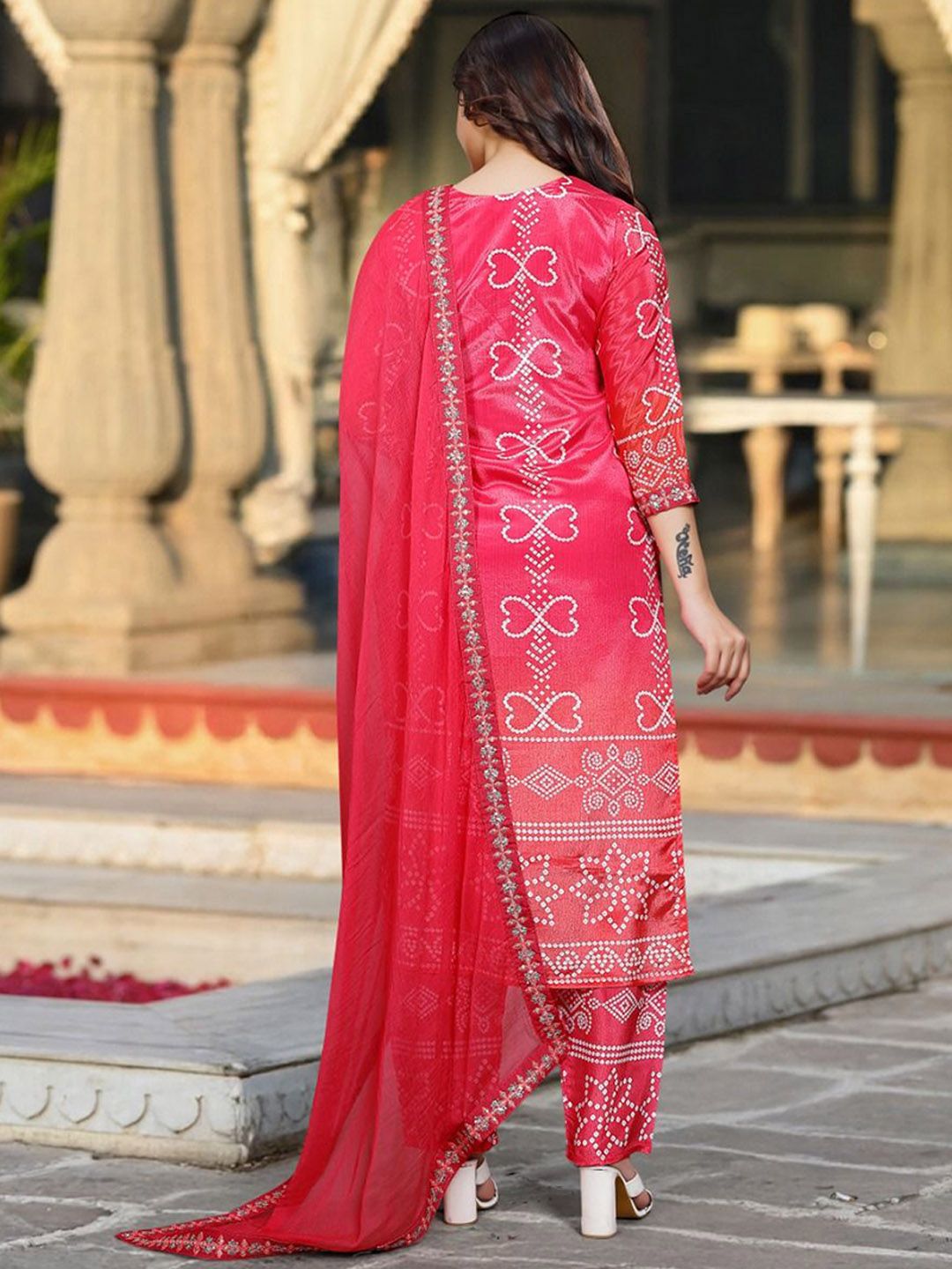 DIVASTRI Women Ethnic Motifs Printed Chanderi Silk Kurta with Trousers & With Dupatta