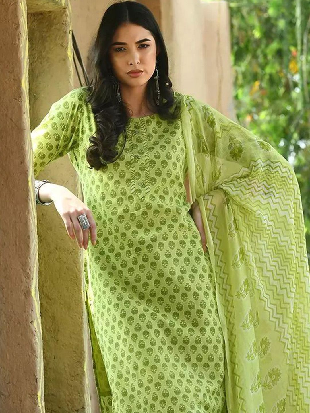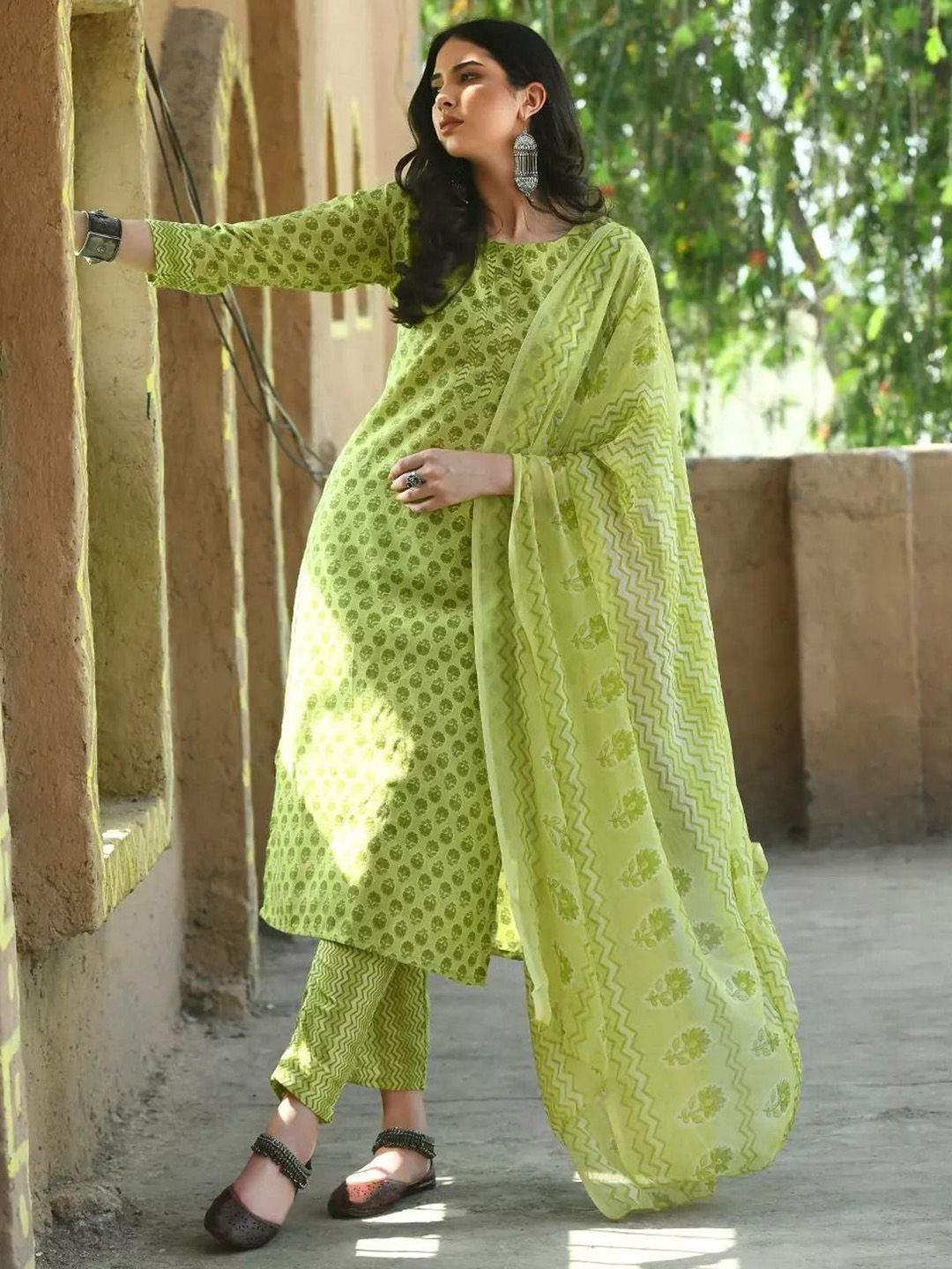 DIVASTRI Women Ethnic Motifs Printed Cotton Kurta with Trousers & Dupatta