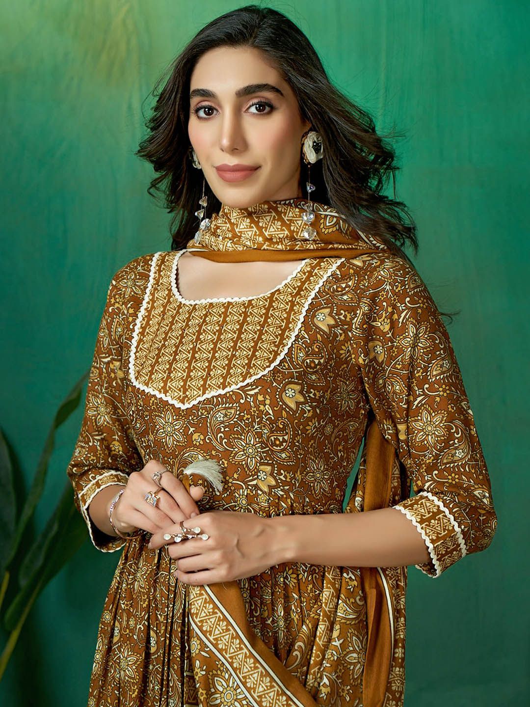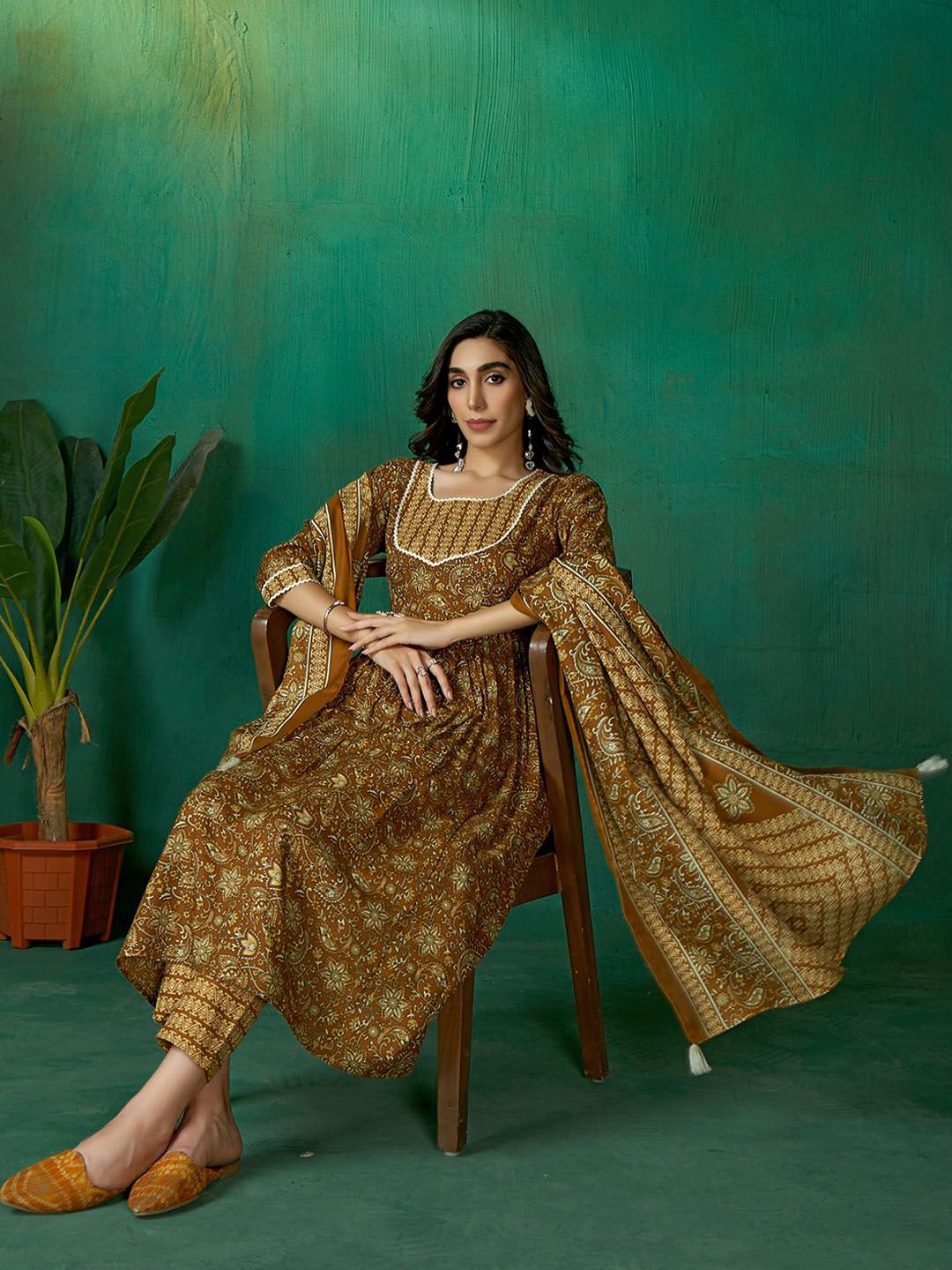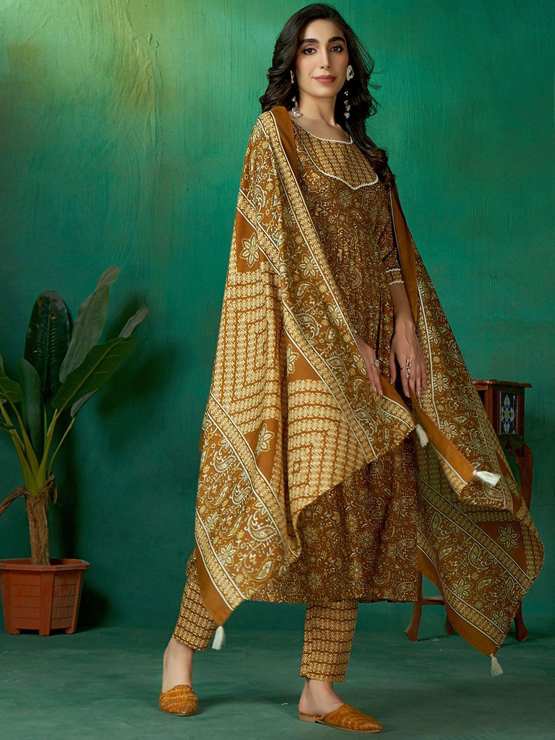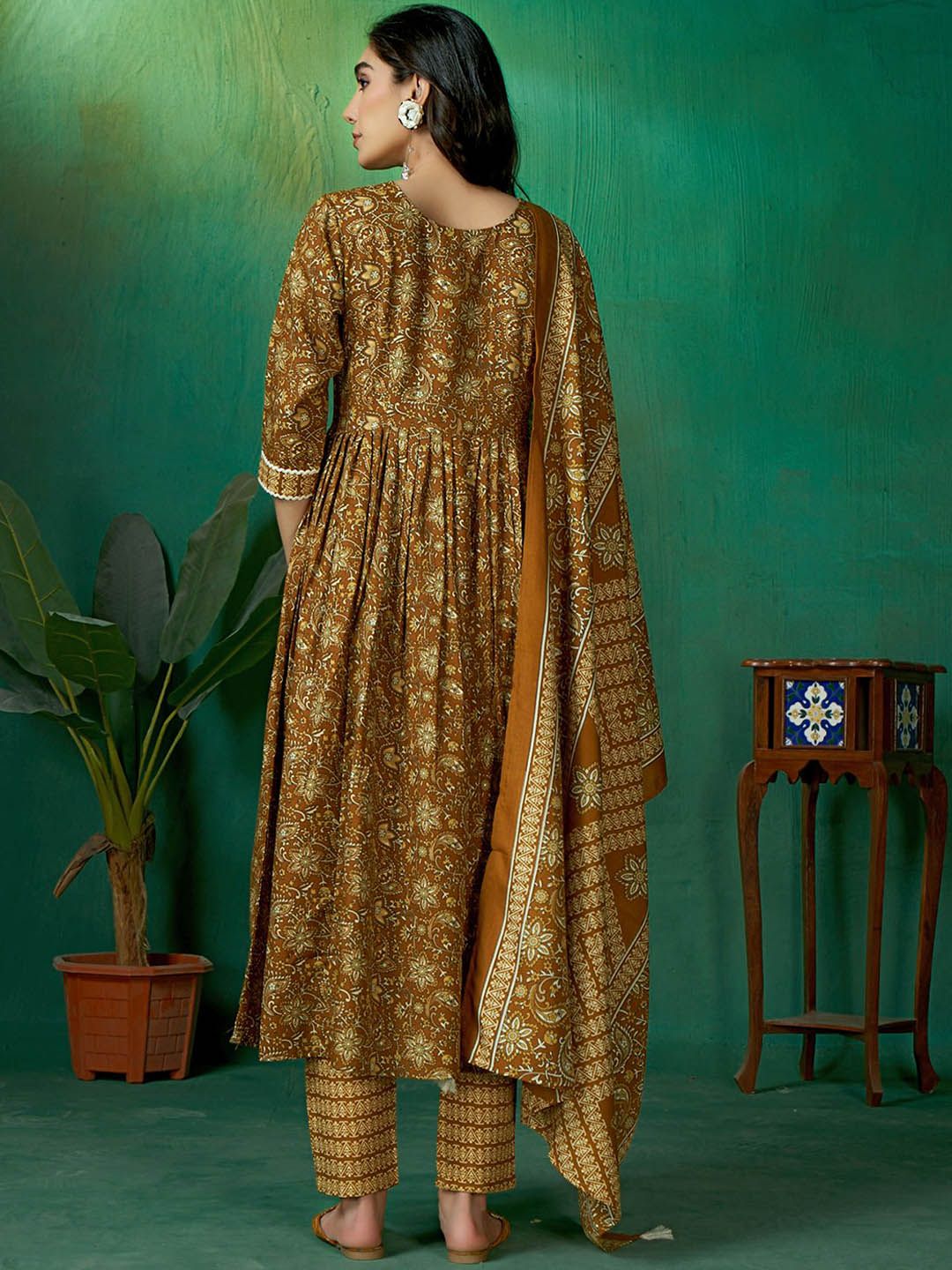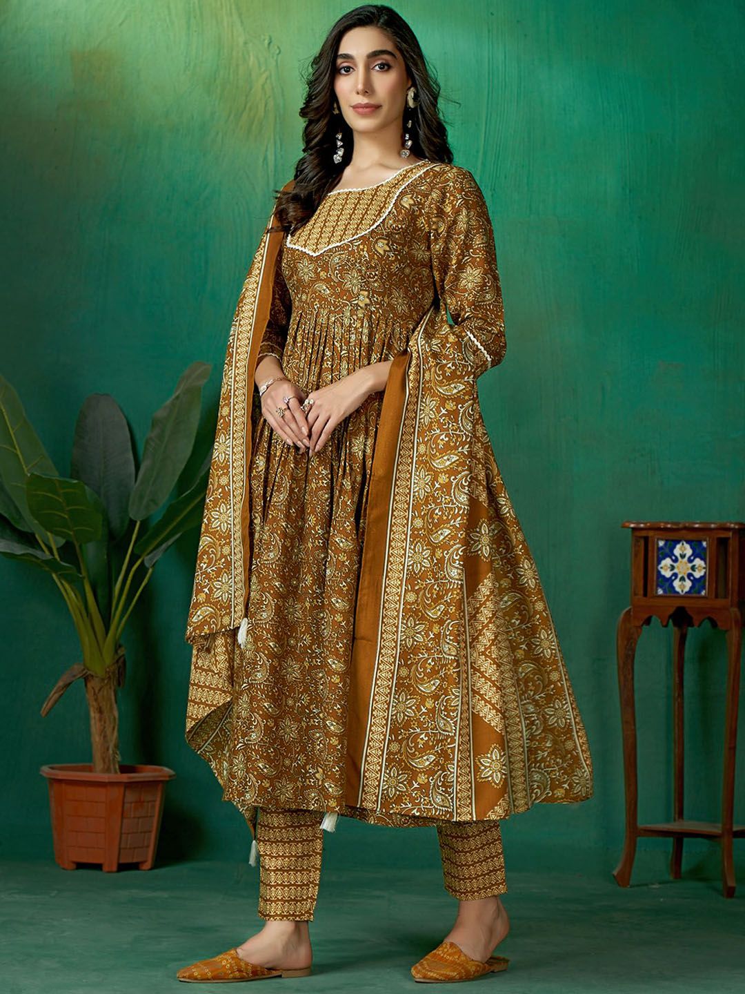 Buy this stylish DIVASTRI Women Ethnic Motifs Printed Pure Cotton Anarkali Kurta with Trouser & Dupatta at Marincart Nepal. This product offers great quality and value. Perfect for those looking for the latest trends in fashion. Get yours now at unbeatable prices.