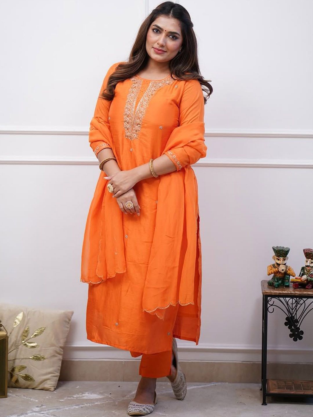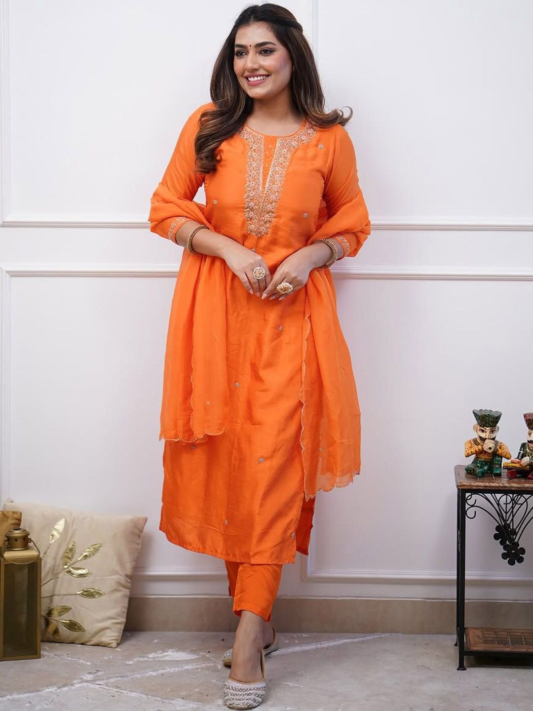 Buy this stylish DIVASTRI Women Ethnic Motifs Regular Beads and Stones Kurta with Trousers & Dupatta at Marincart Nepal. This product offers great quality and value. Perfect for those looking for the latest trends in fashion. Get yours now at unbeatable prices.