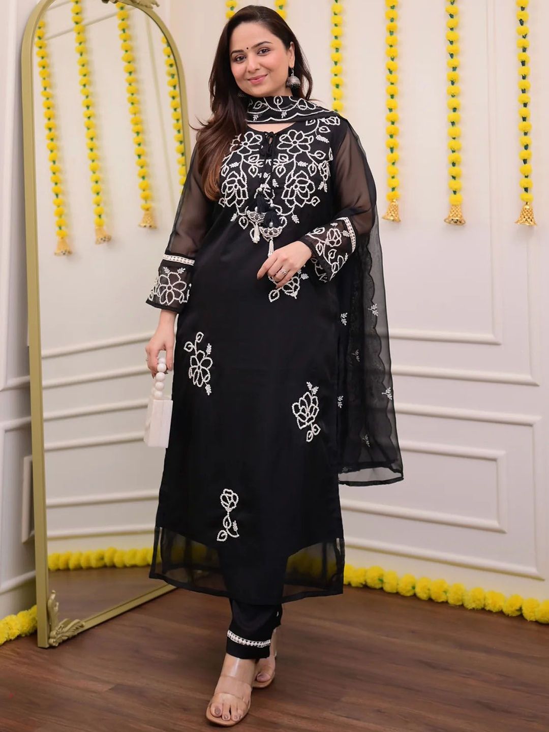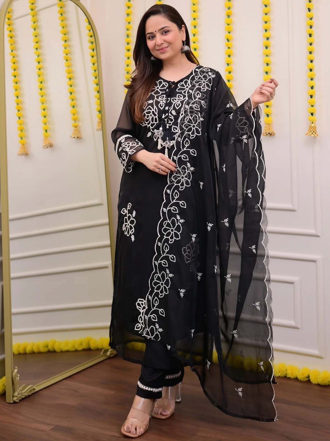 DIVASTRI Women Floral Embroidered Thread Work Kurta with Trousers & Dupatta Kurta Sets