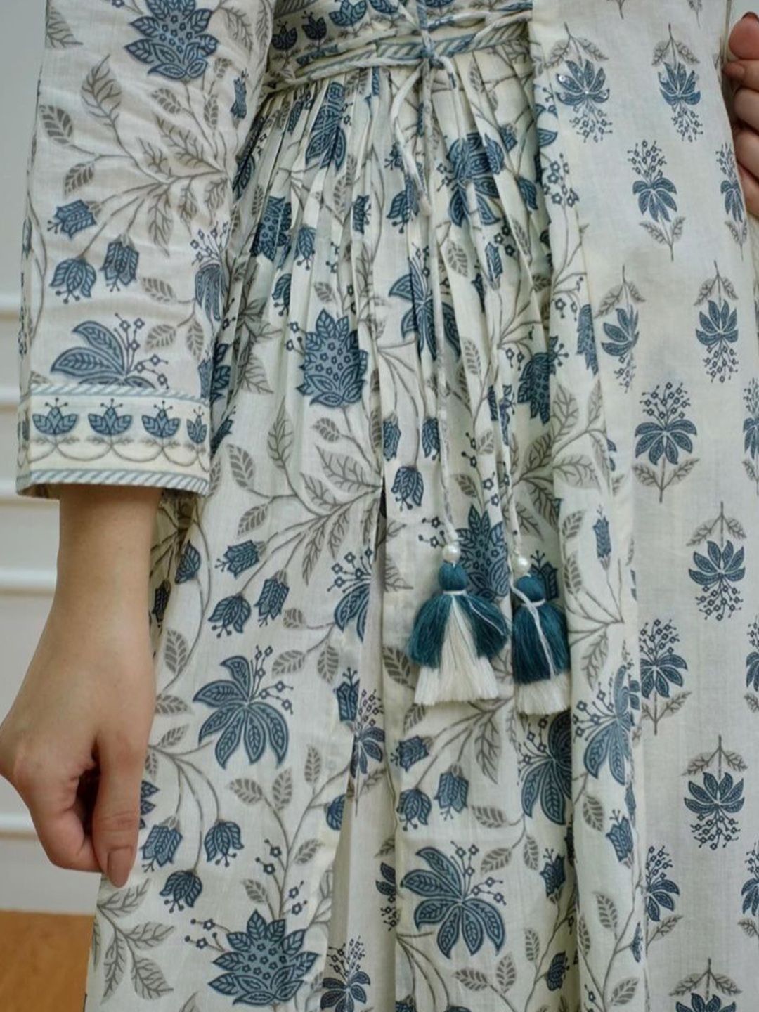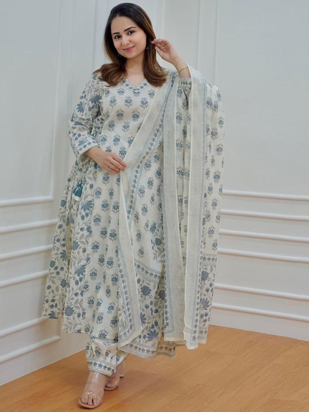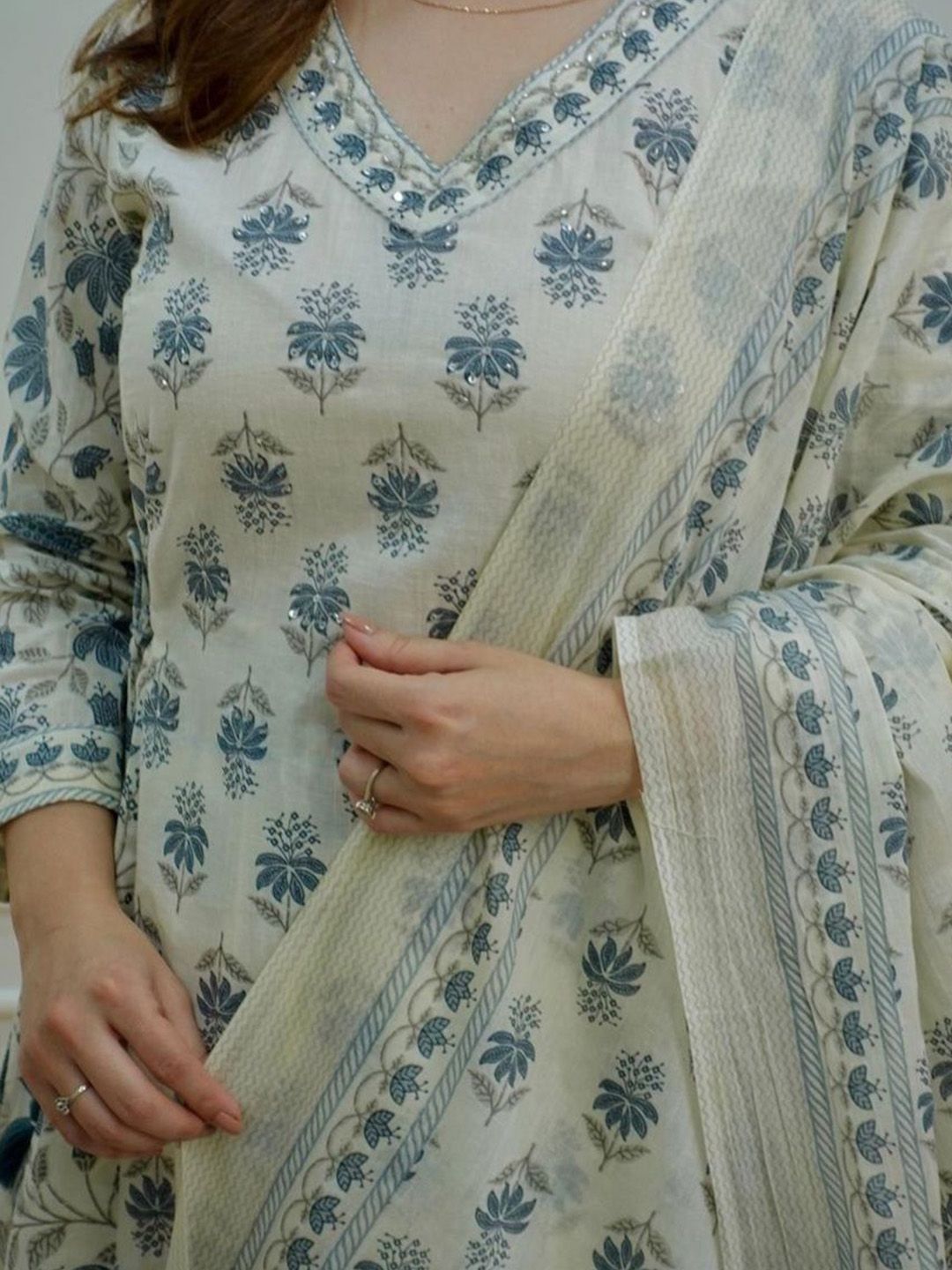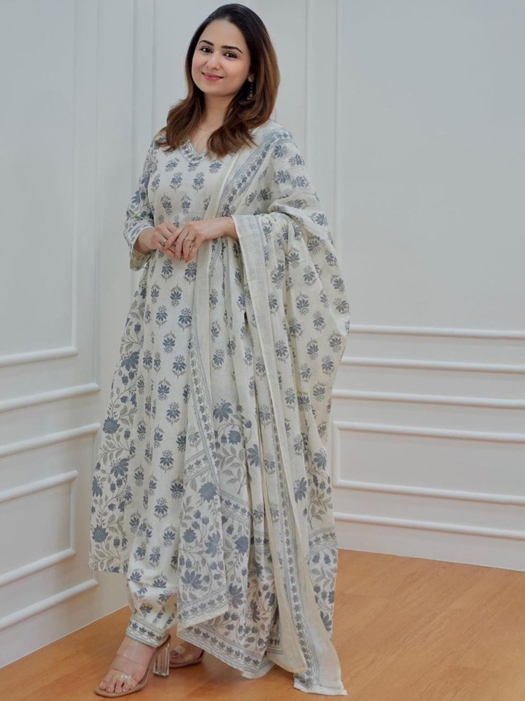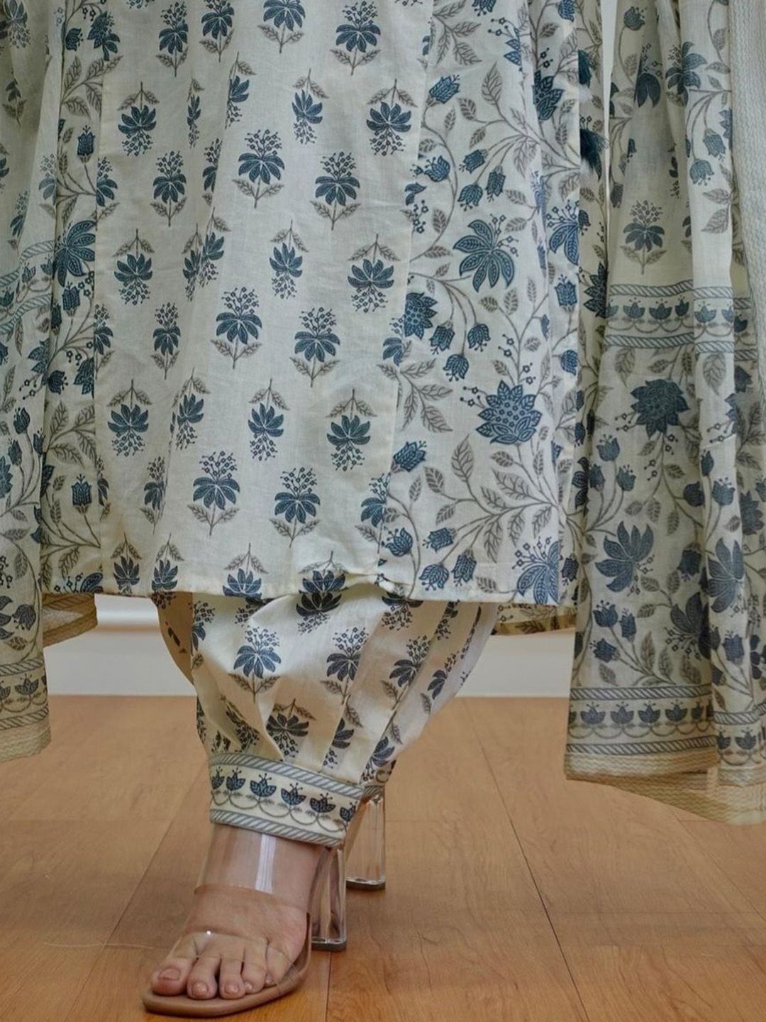 DIVASTRI Women Floral Printed Cotton Kurta with Patiala & Dupatta
