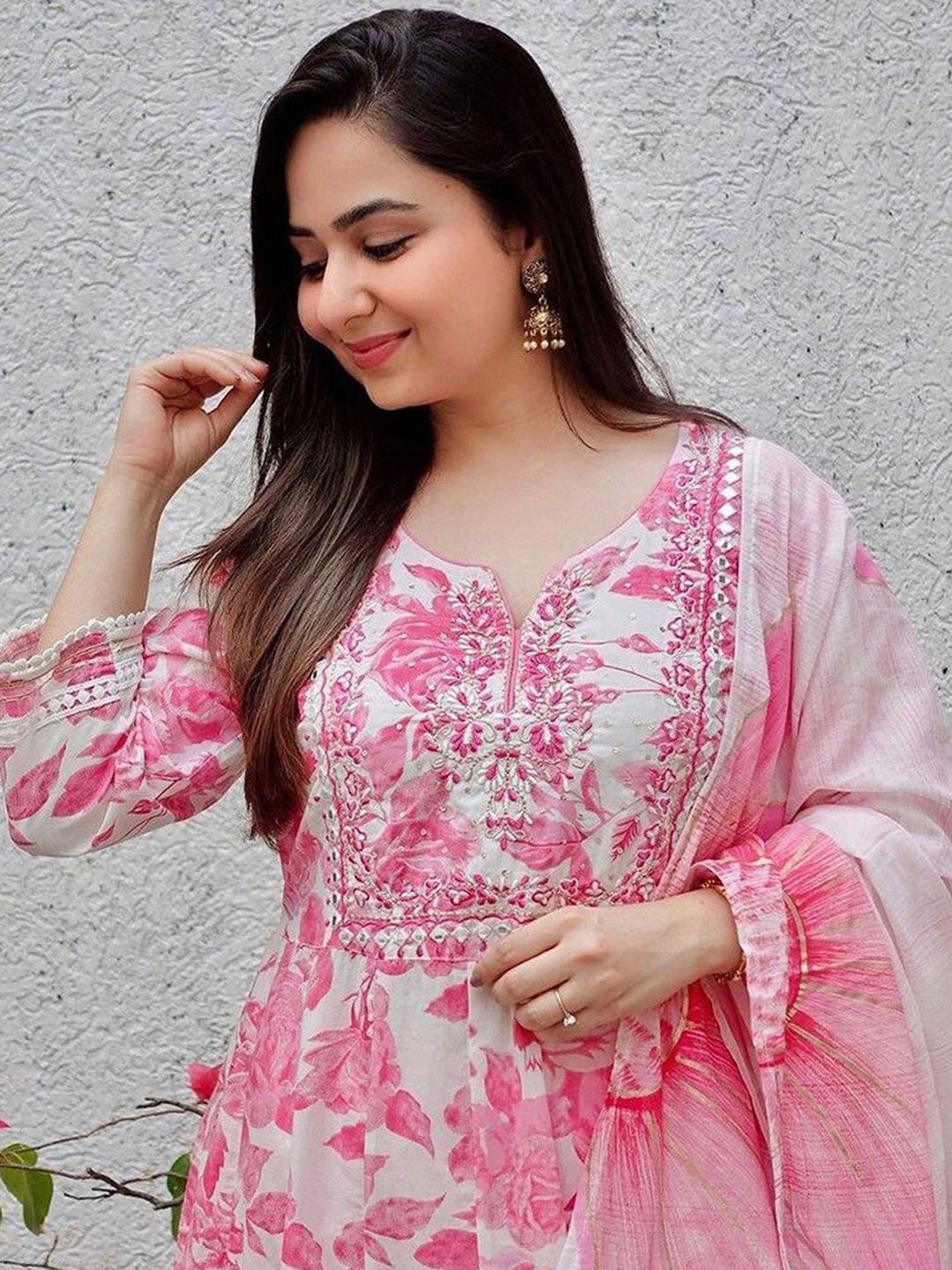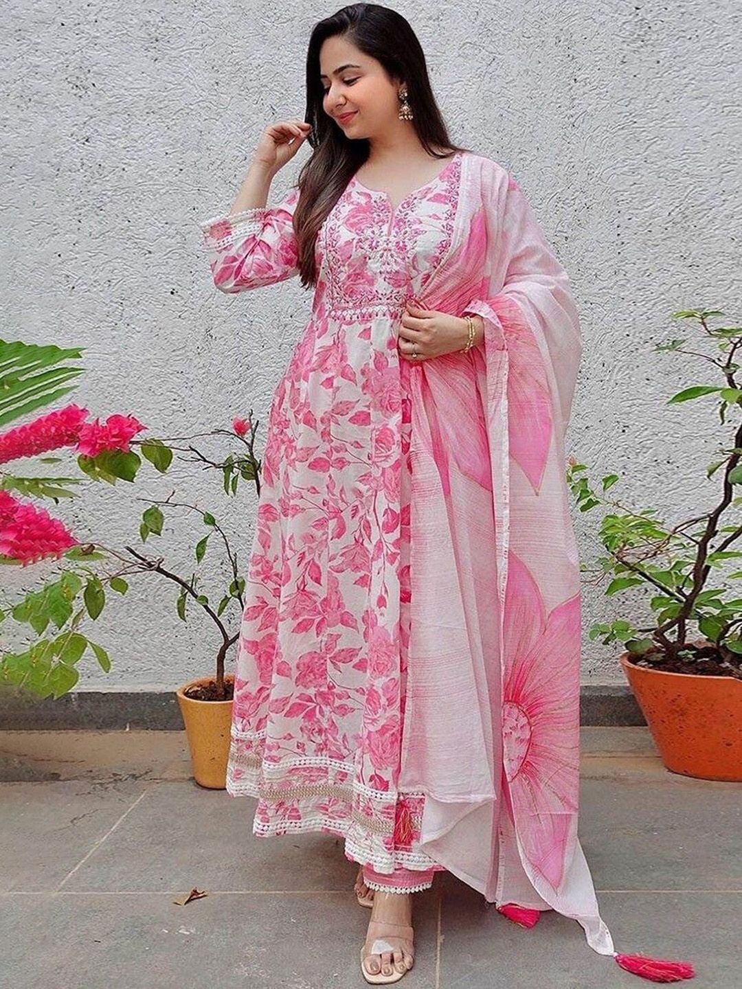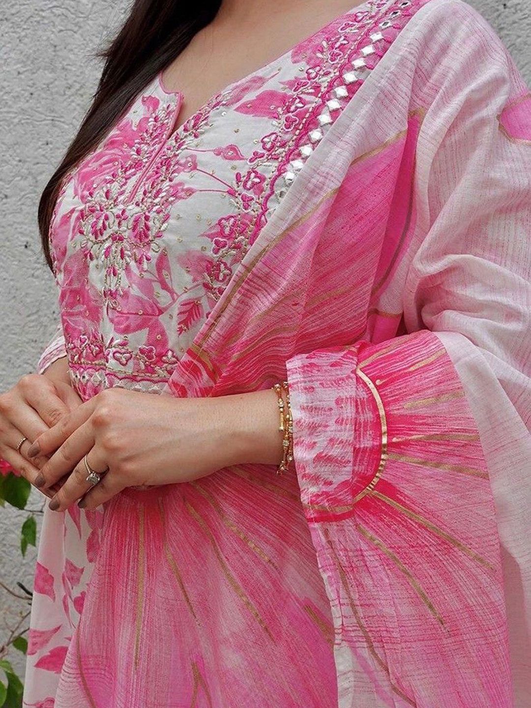 DIVASTRI Women Floral Printed Cotton Kurta with Trousers & Dupatta