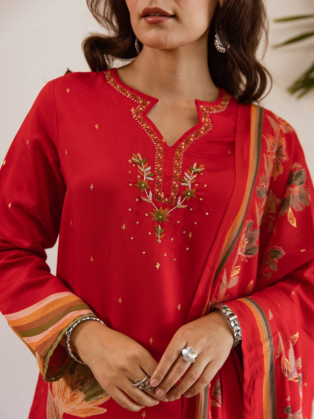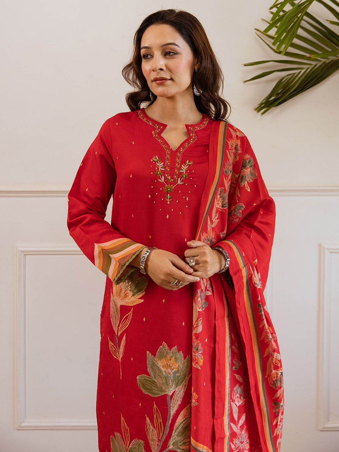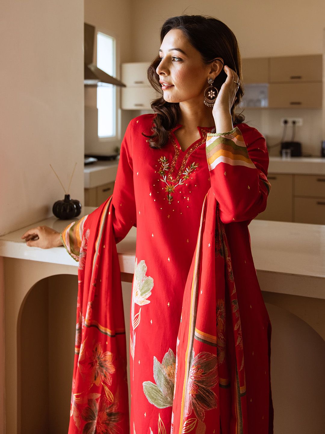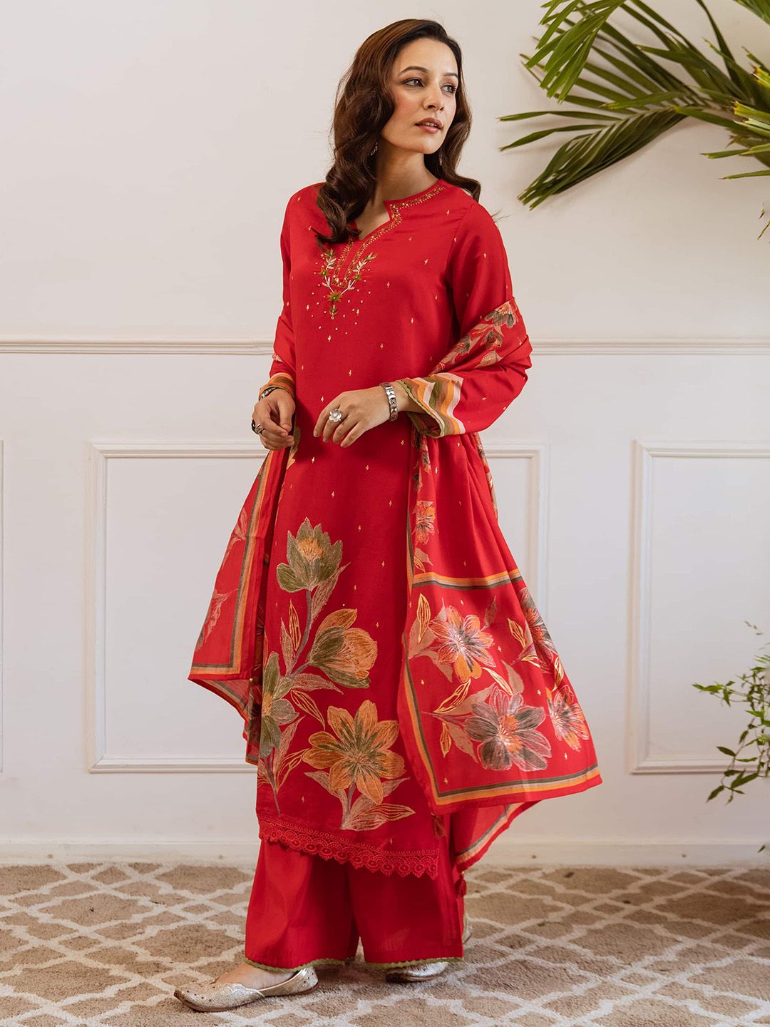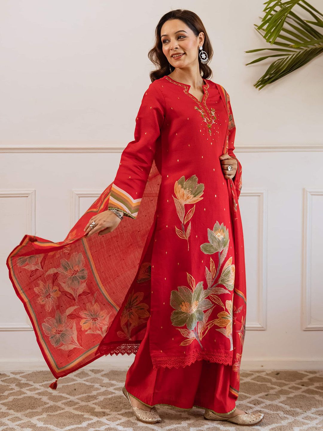 DIVASTRI Women Floral Printed Modal Muslin Kurta with Palazzos & Dupatta
