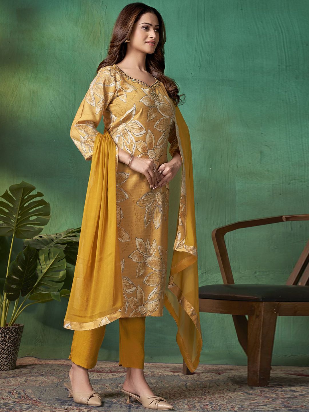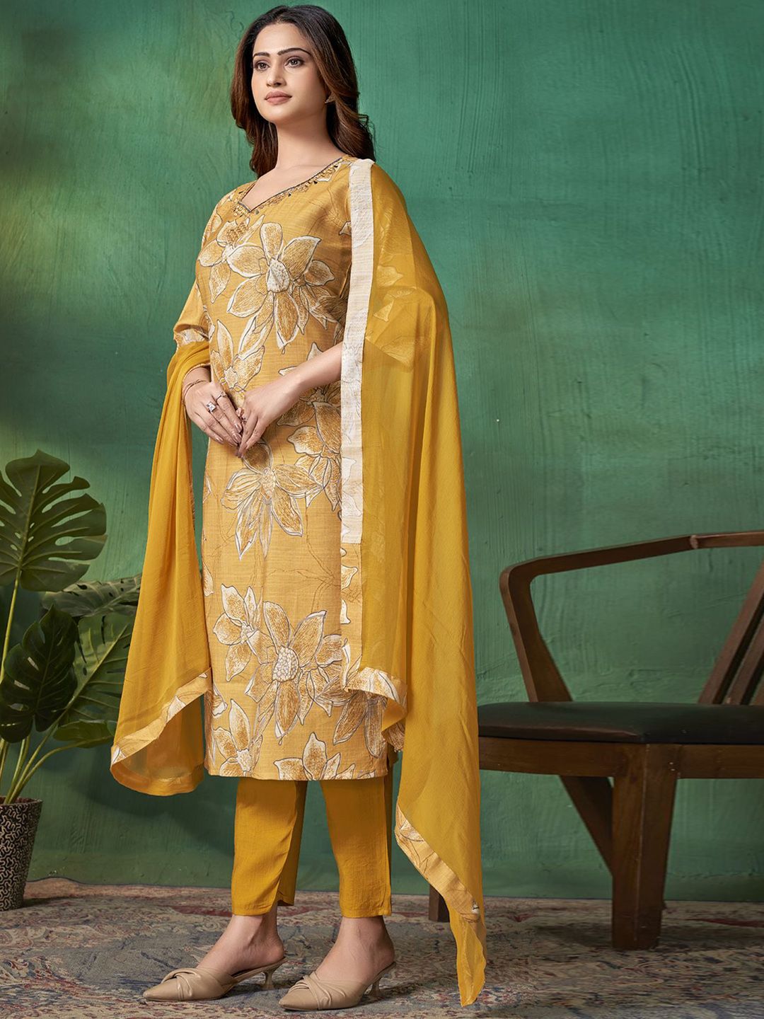 DIVASTRI Women Floral Printed Pure Cotton Kurta with Trousers & Dupatta