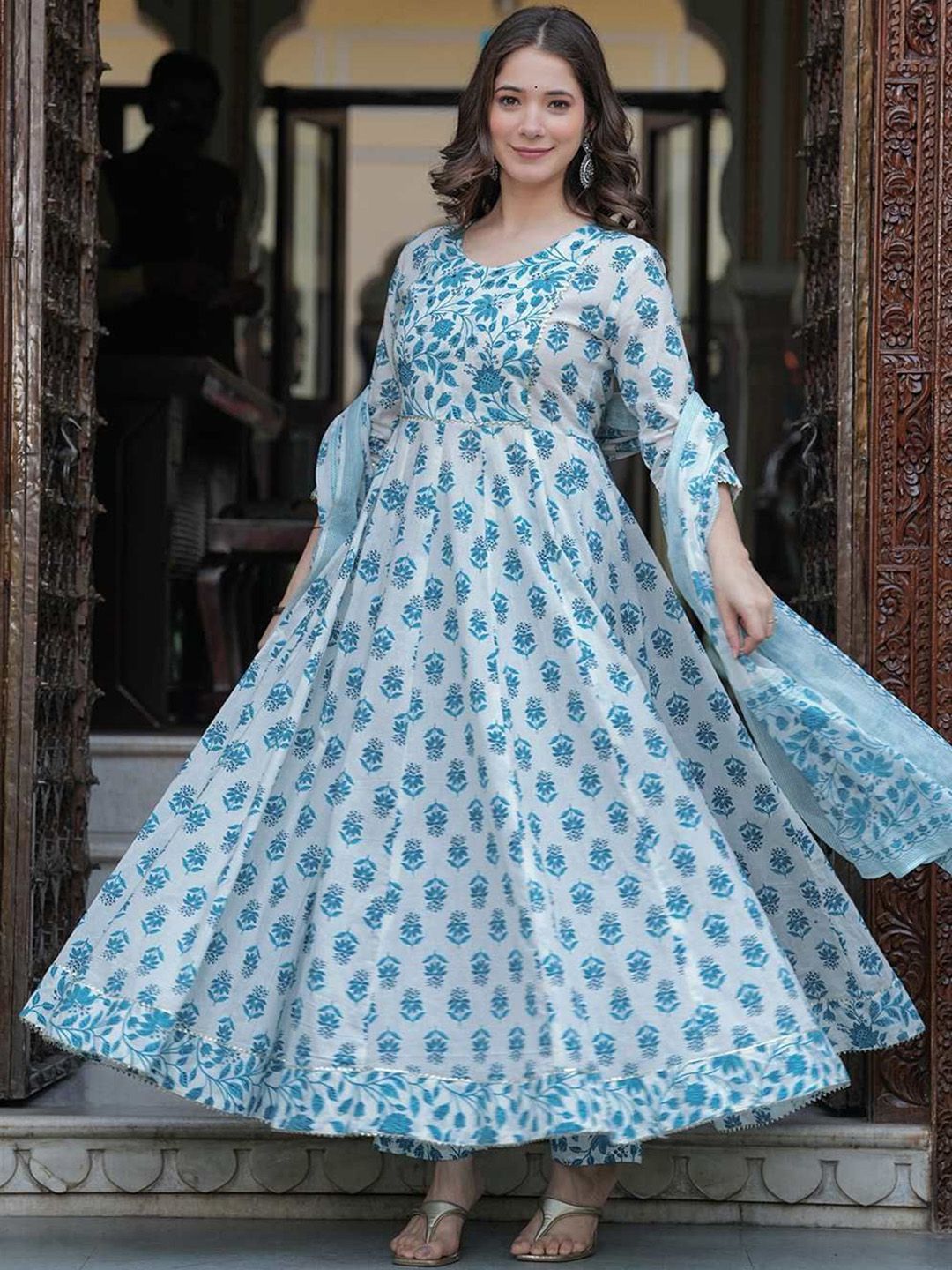 DIVASTRI Women Floral Printed Regular Pure Cotton Kurta with Trousers & With Dupatta