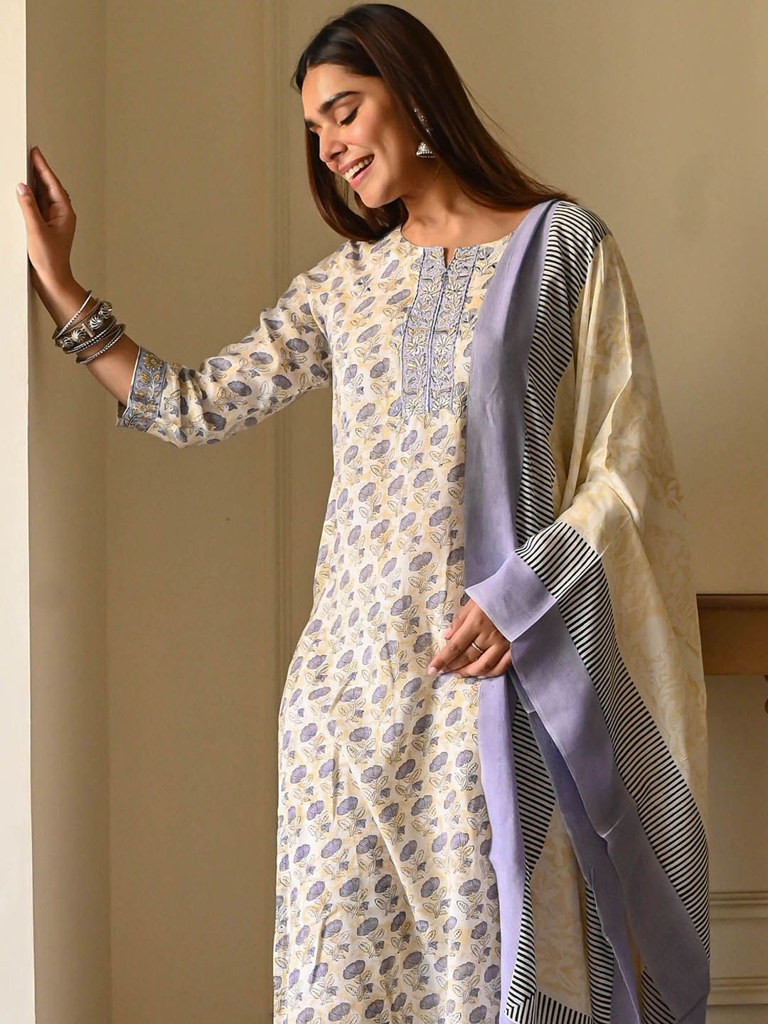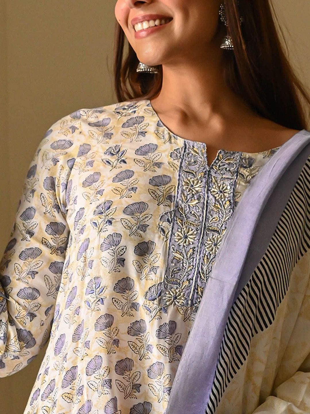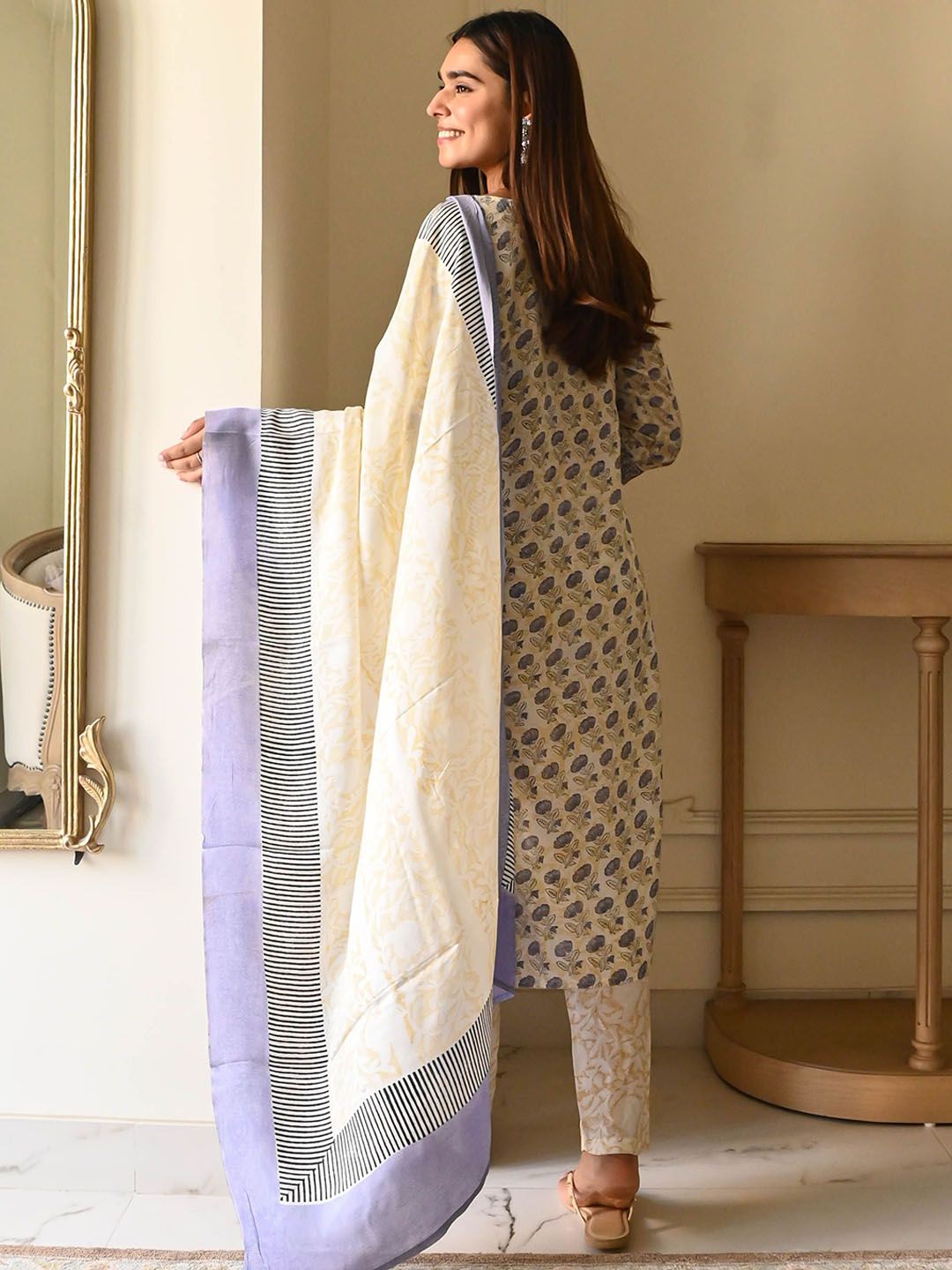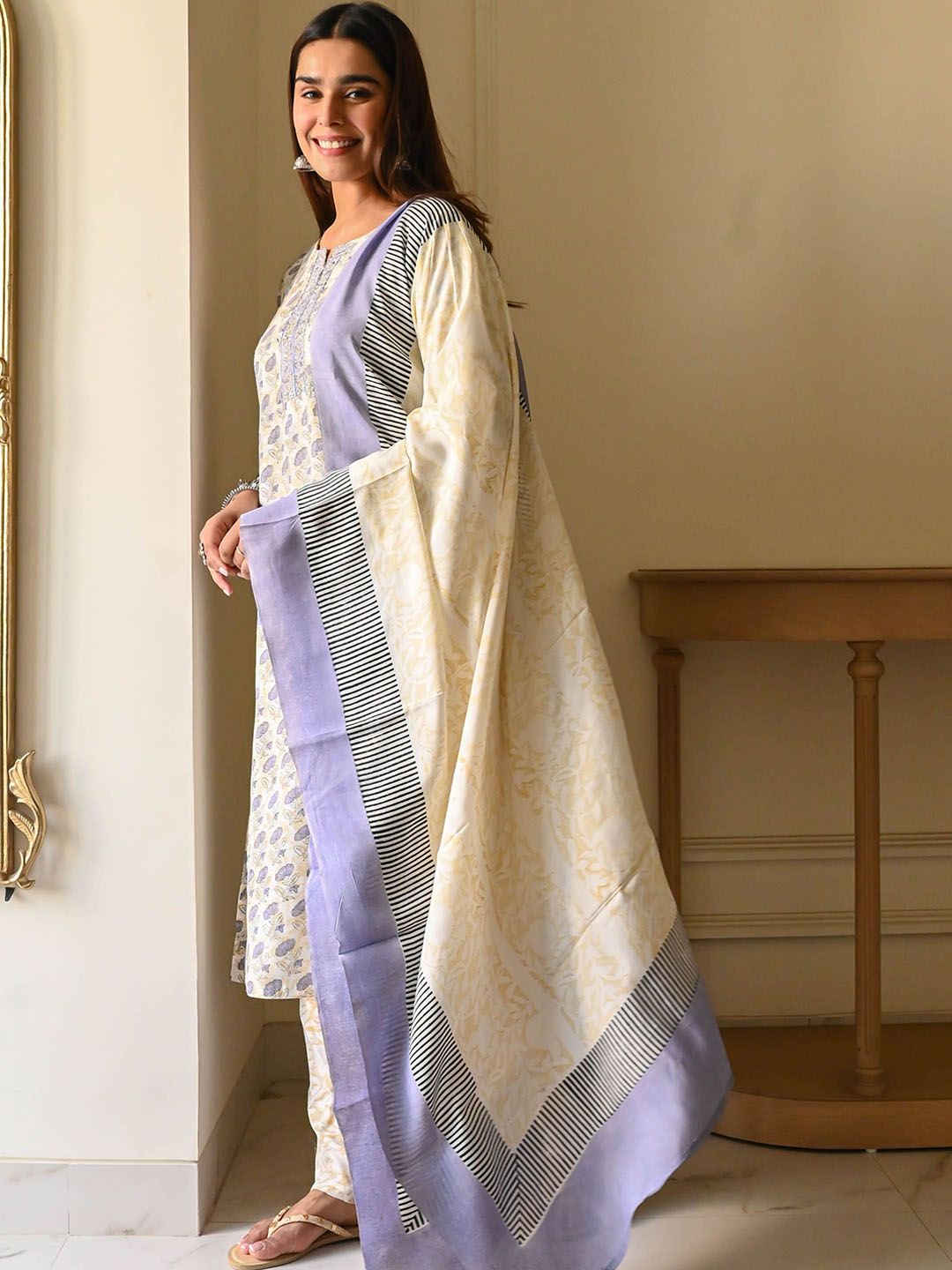 DIVASTRI Women Floral Printed Round Neck Kurta with Trousers & Dupatta