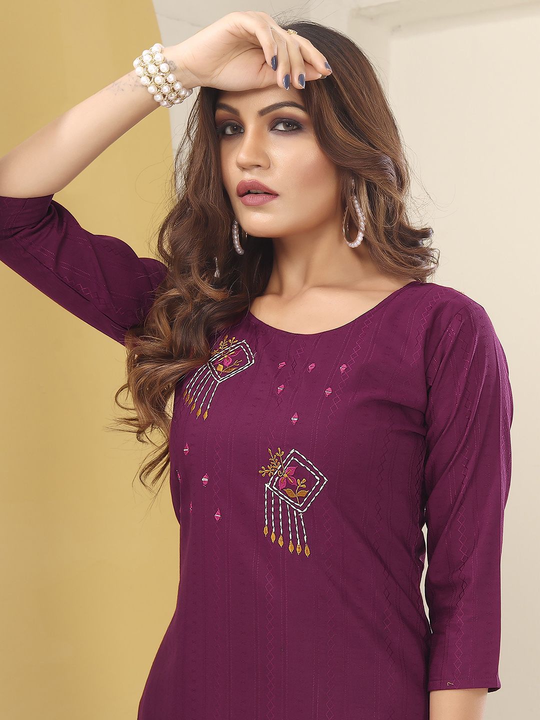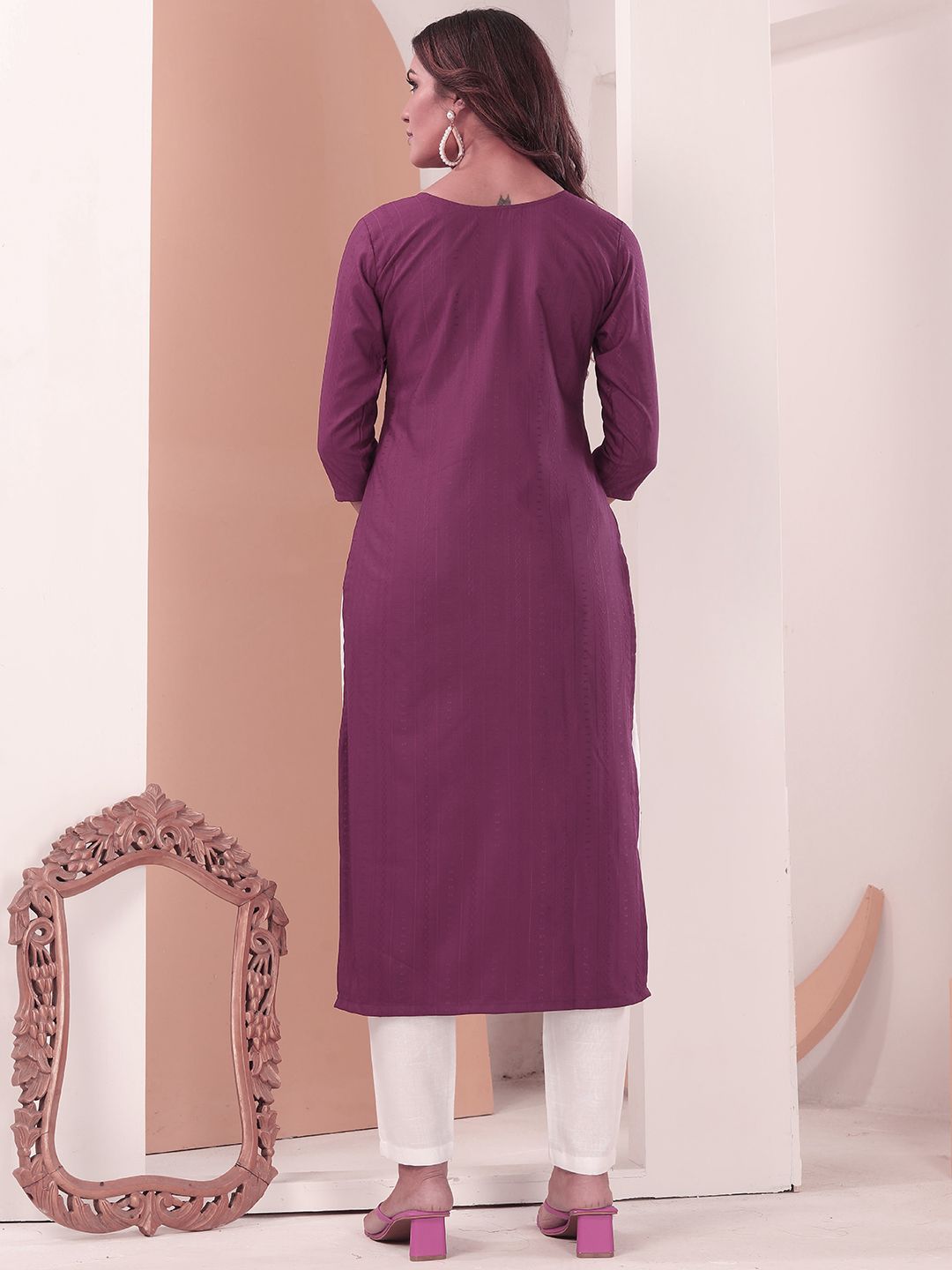DIVASTRI Women Geometric Embroidered Thread Work Kurta with Trousers