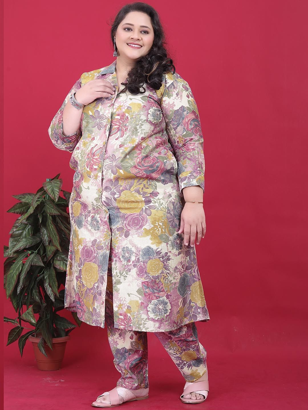 DIVASTRI Women Plus Size Floral Printed Kurta with Trousers