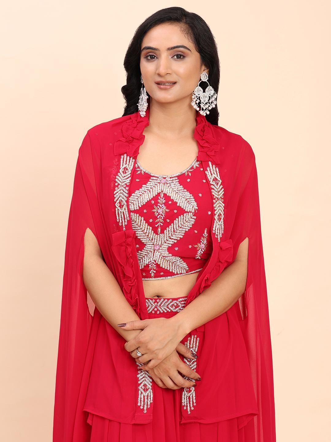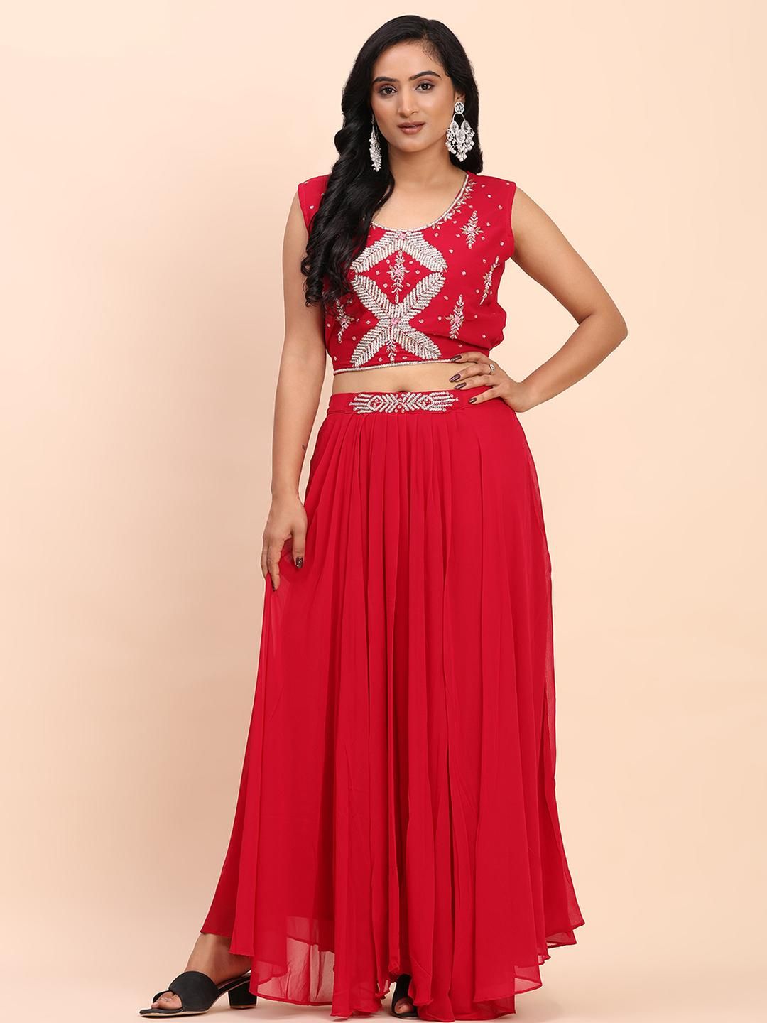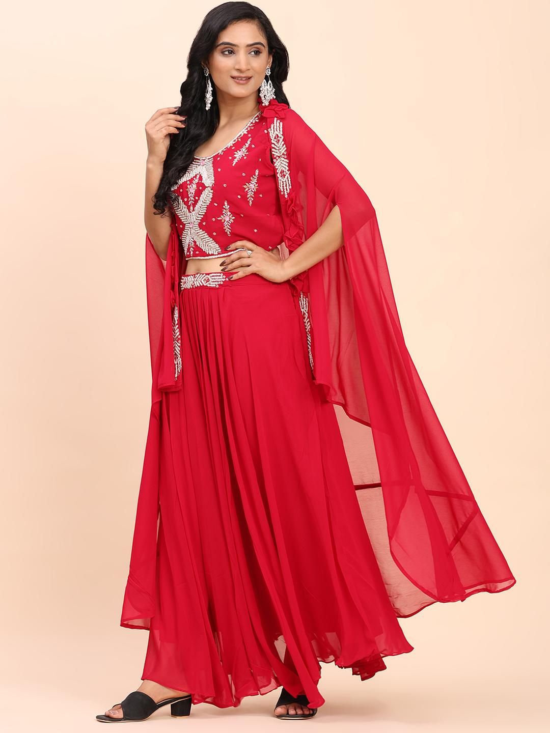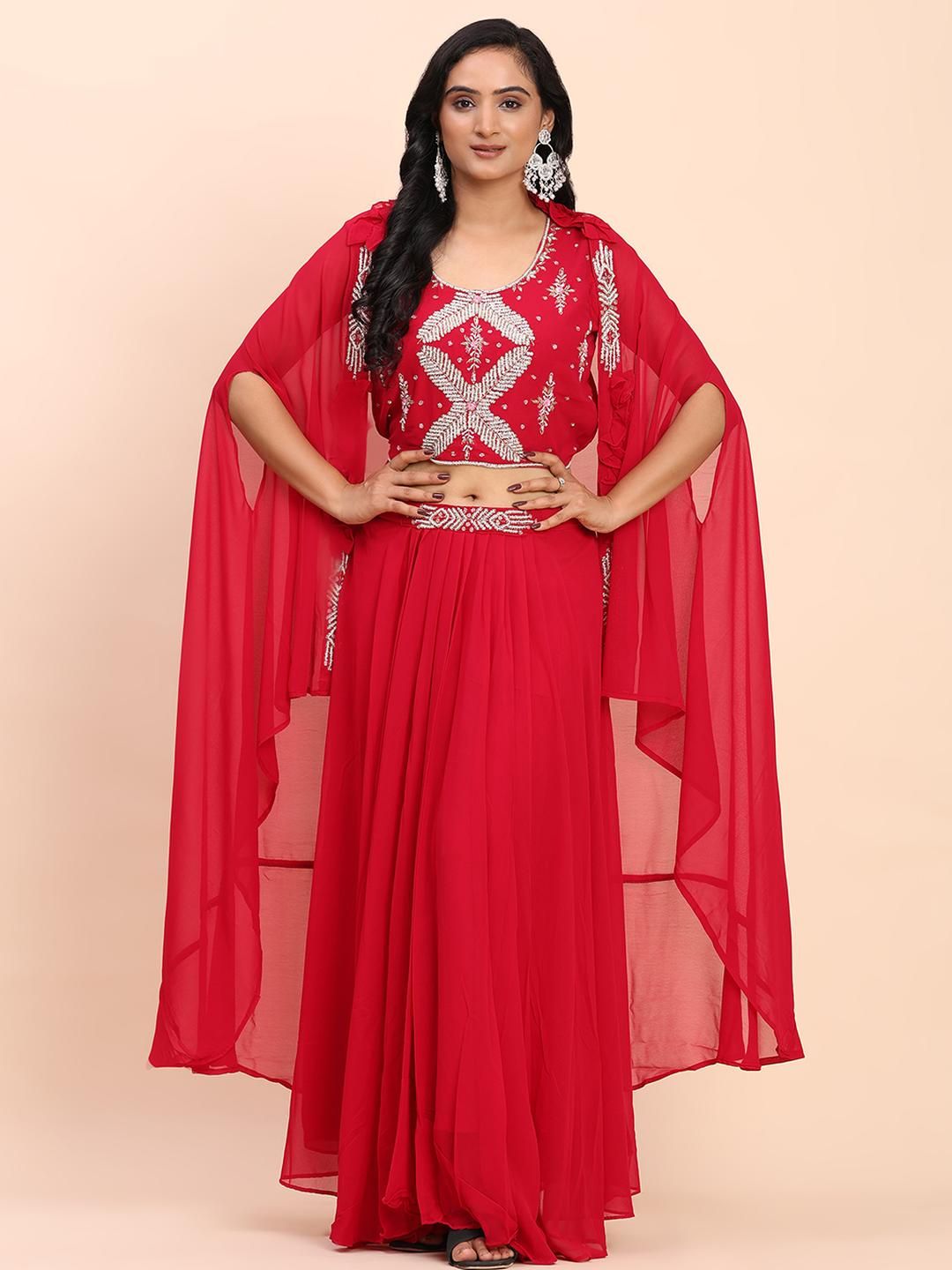 DIVASTRI Women Red Georgette Kurta Sets