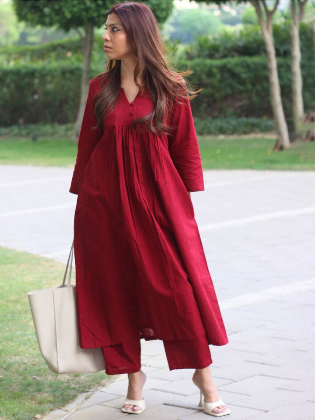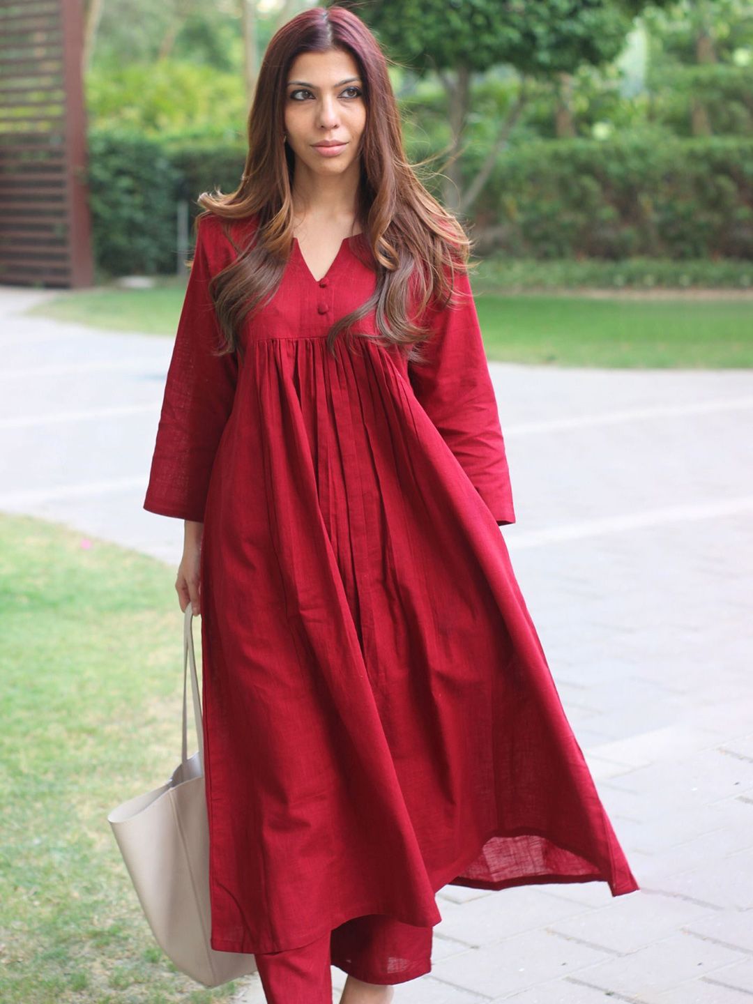 DIVASTRI Women Solid A-Line Kurta with Trousers